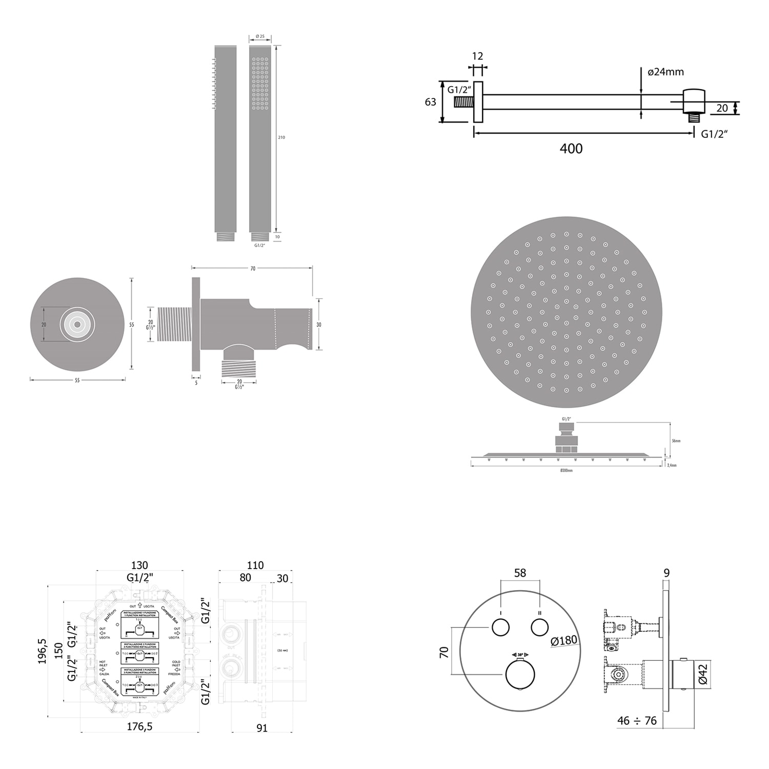 Kronenbach Smart Push Thermostat Duschsystem Unterputz für 2 Verbraucher, rund