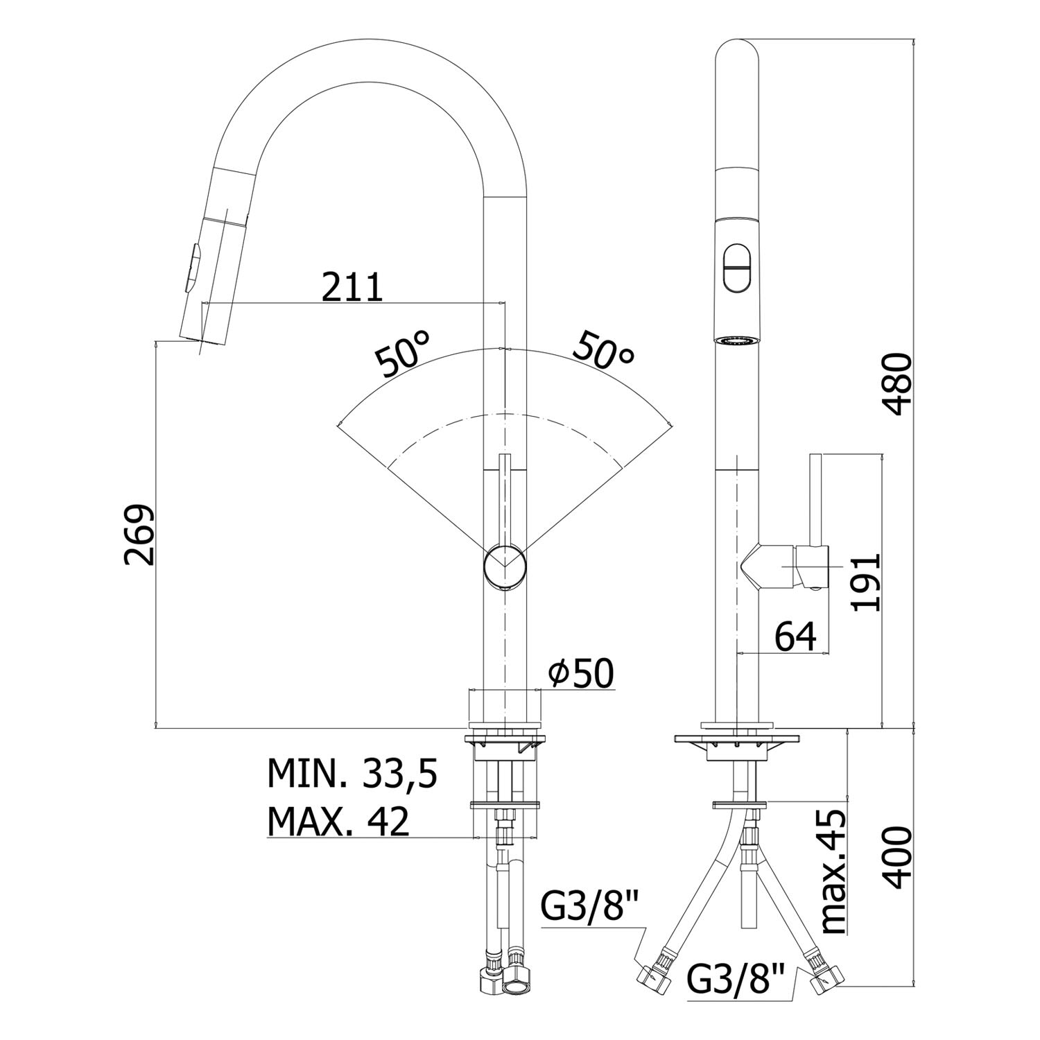 - Herausziehbare Handbrause mit 2 Strahlarten für unterschiedliche Reinigungsanforderungen.