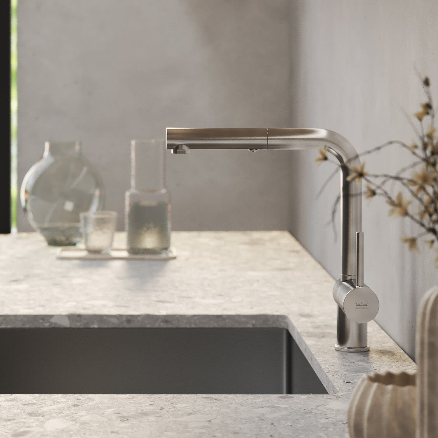 Kronenbach Küchenarmaturen stehen für Eleganz und Raffinesse und glänzen durch die Harmonie der Proportionen. Diese Einhebel-Küchenarmatur vereint Funktionalität und ästhetisches Design, um Ihre Küche zu bereichern.