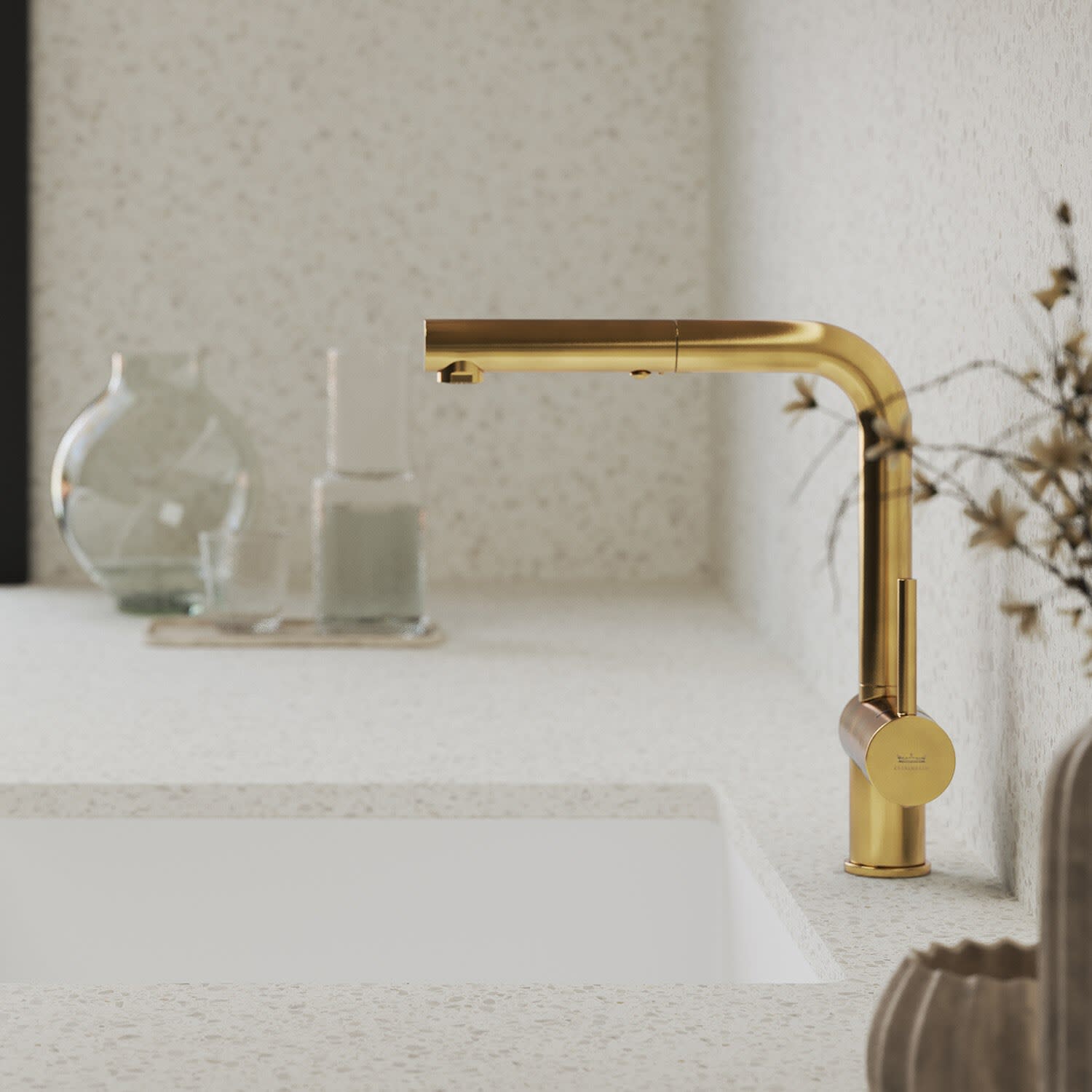 Kronenbach Küchenarmaturen stehen für Eleganz und Raffinesse und glänzen durch die Harmonie der Proportionen. Diese Einhebel-Küchenarmatur vereint Funktionalität und ästhetisches Design, um Ihre Küche zu bereichern.