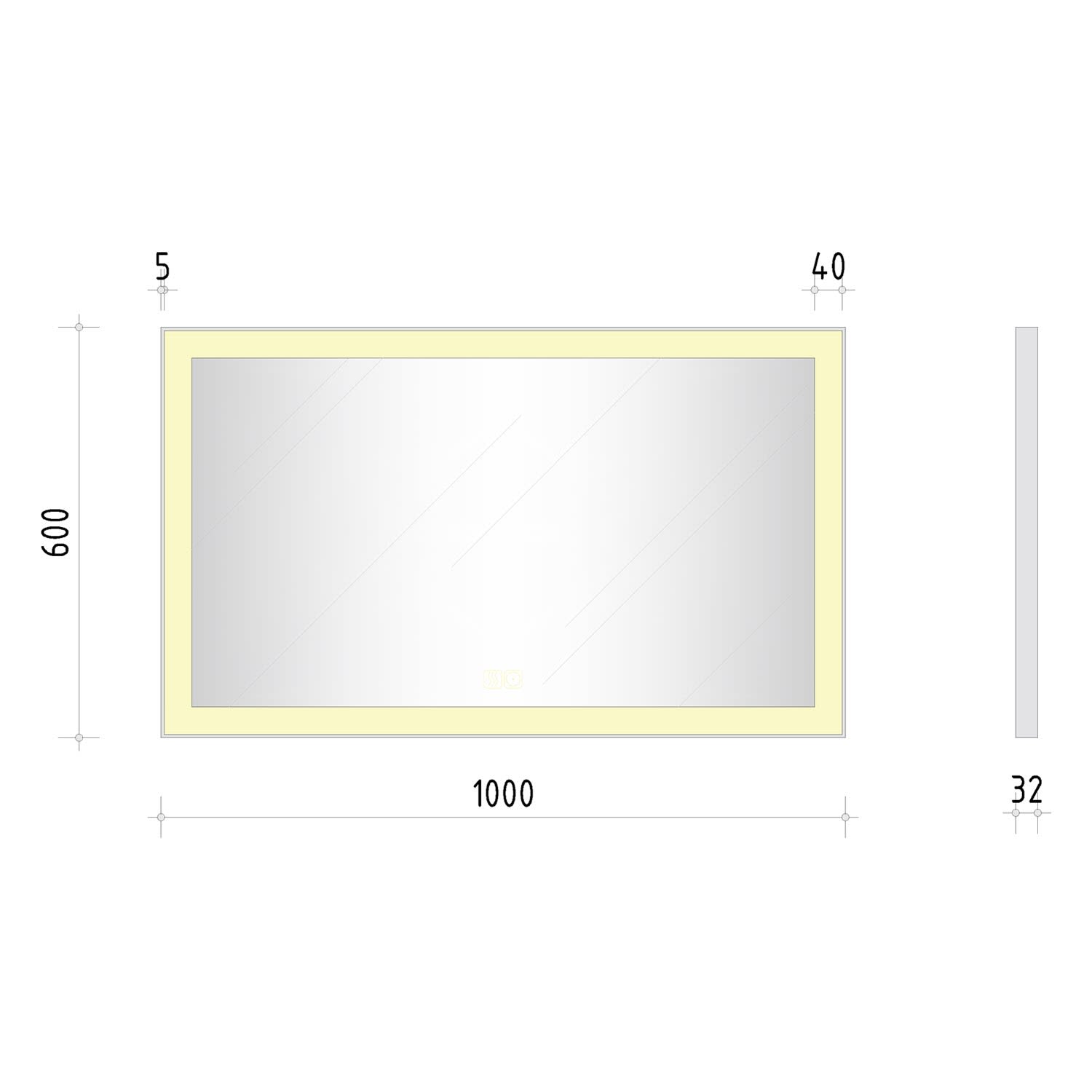 - mit in die Spiegelfläche integrierten Touch-Schaltern für an/aus, Dimmfunktion und Antibeschlag