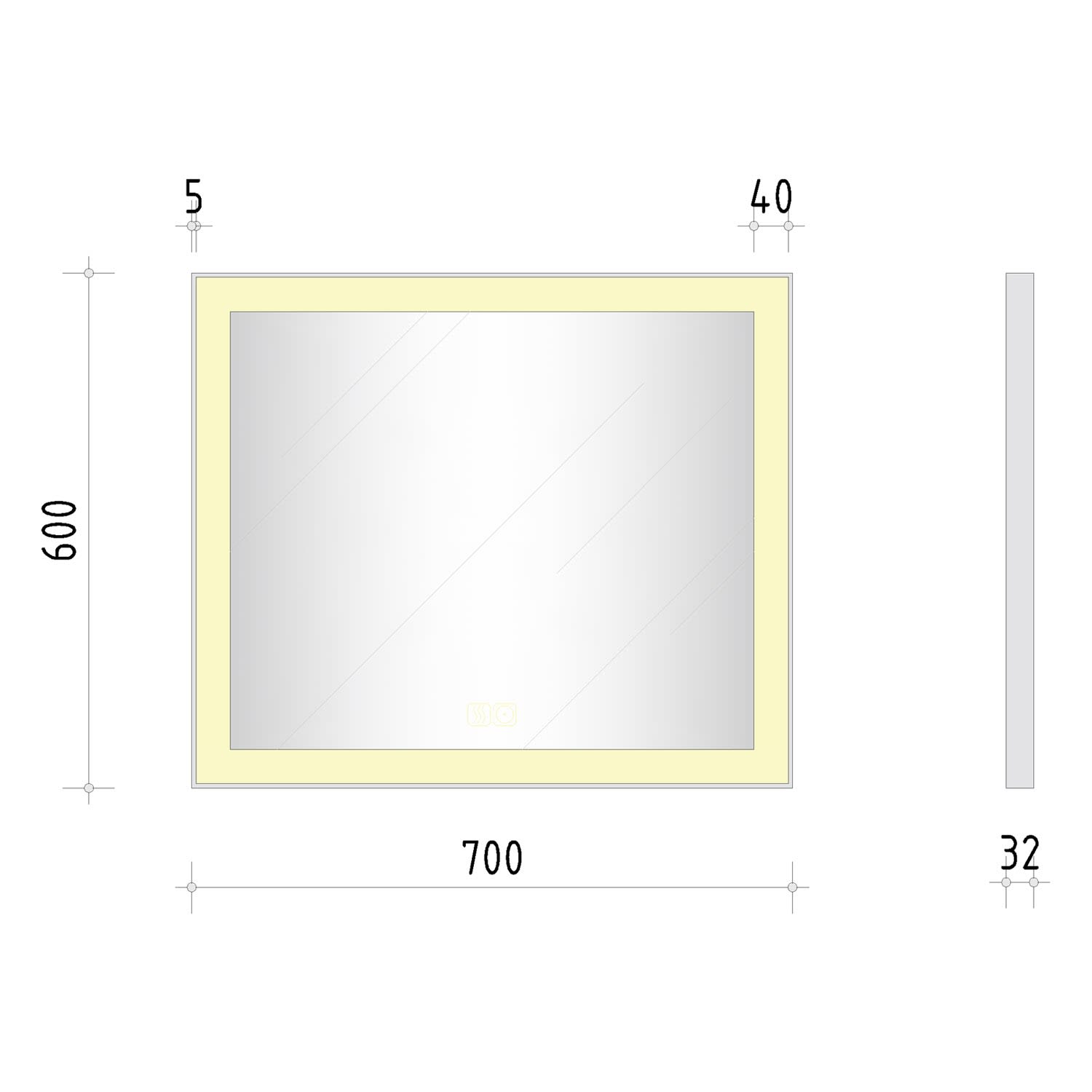 - mit in die Spiegelfläche integrierten Touch-Schaltern für an/aus, Dimmfunktion und Antibeschlag