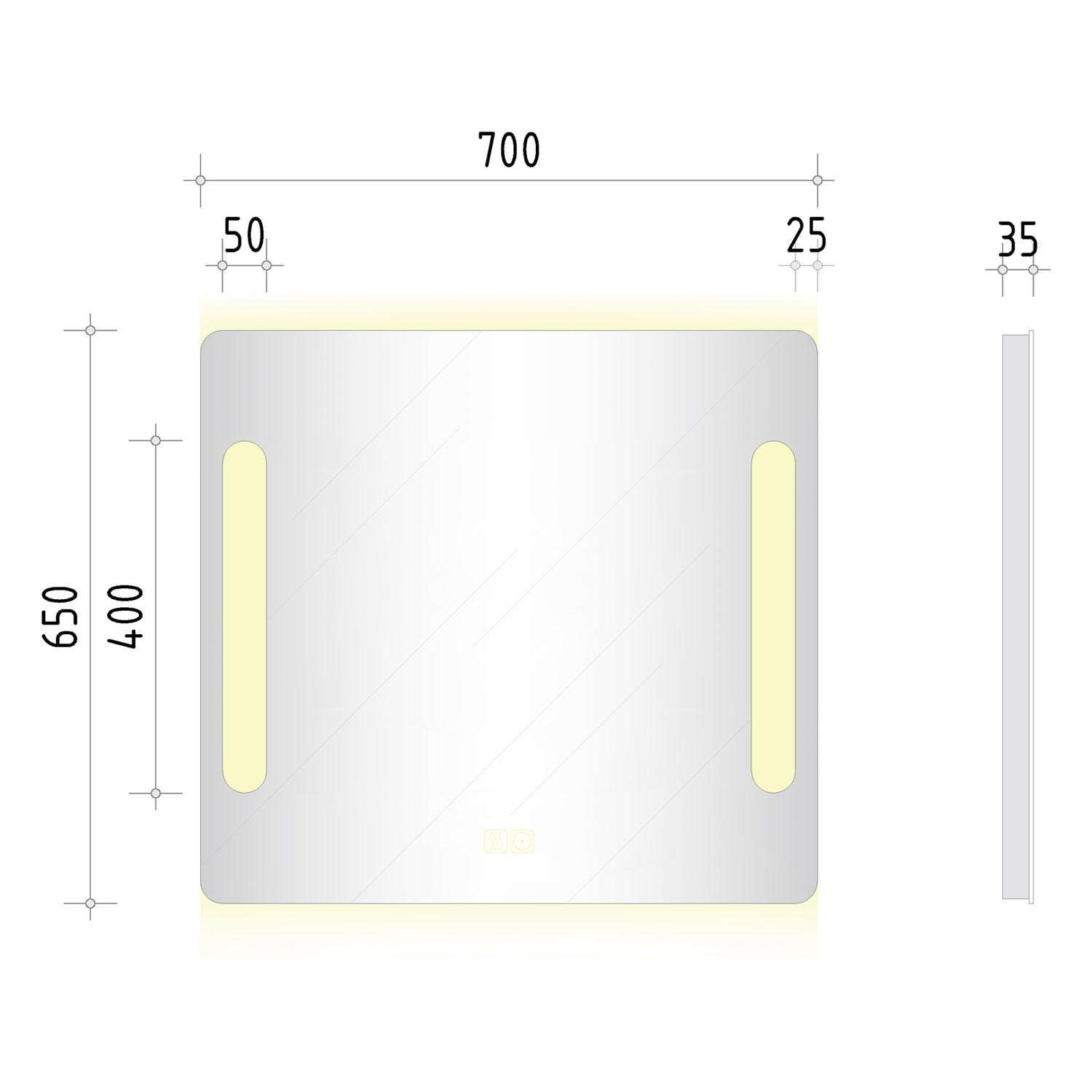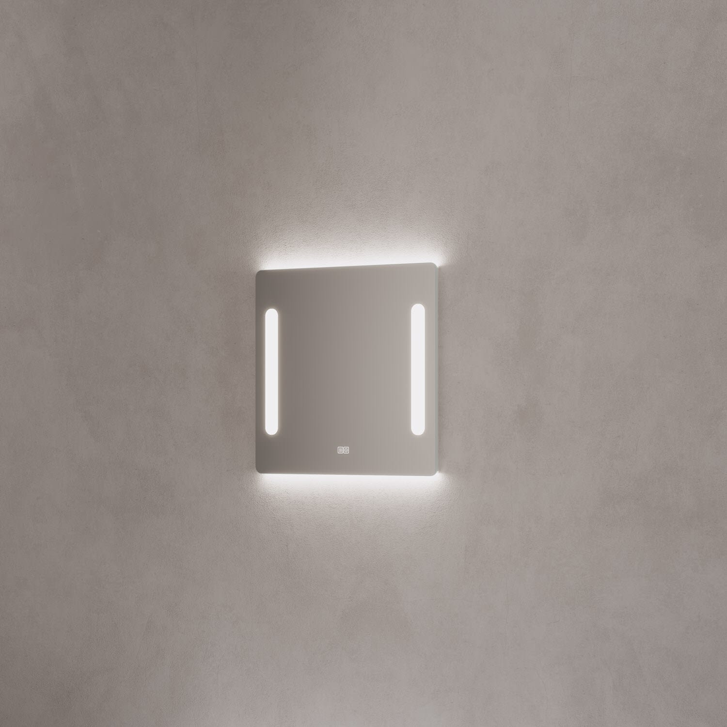 - mit in die Spiegelfläche integrierten Touch-Schaltern für Ein/Aus, Dimmfunktion und Anti-Beschlag