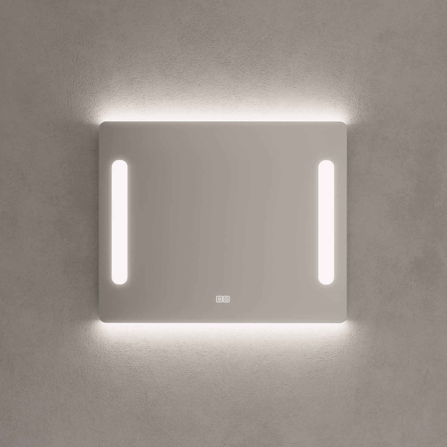 - mit in die Spiegelfläche integrierten Touch-Schaltern für Ein/Aus, Dimmfunktion und Anti-Beschlag