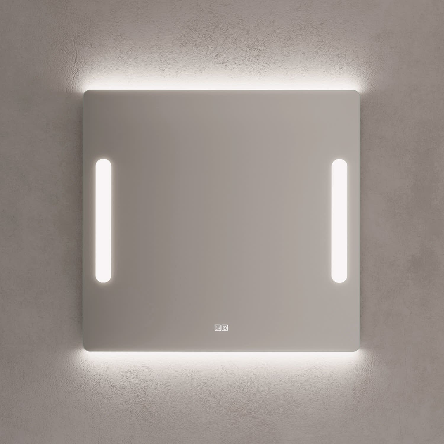 - mit in die Spiegelfläche integrierten Touch-Schaltern für Ein/Aus, Dimmfunktion und Anti-Beschlag