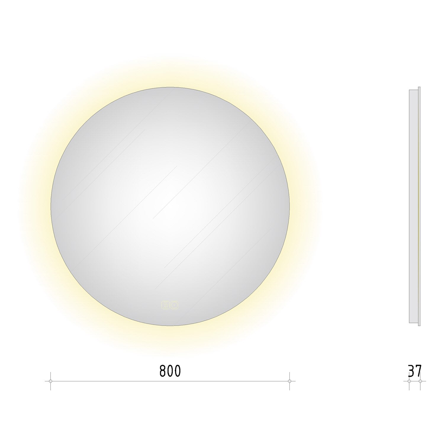 - mit in die Spiegelfläche integrierten Touch-Schaltern für Ein/Aus, Dimmfunktion und Anti-Beschlag