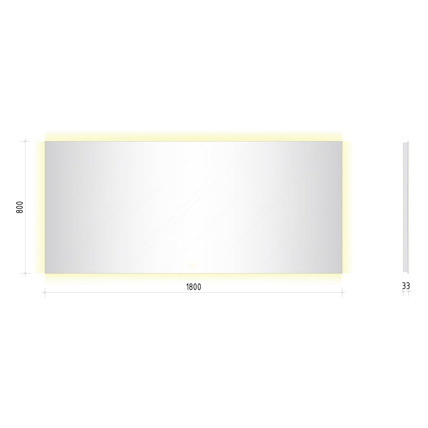 - mit in die Spiegelfläche integrierten Touch-Schaltern für an/aus, Dimmfunktion und Antibeschlag