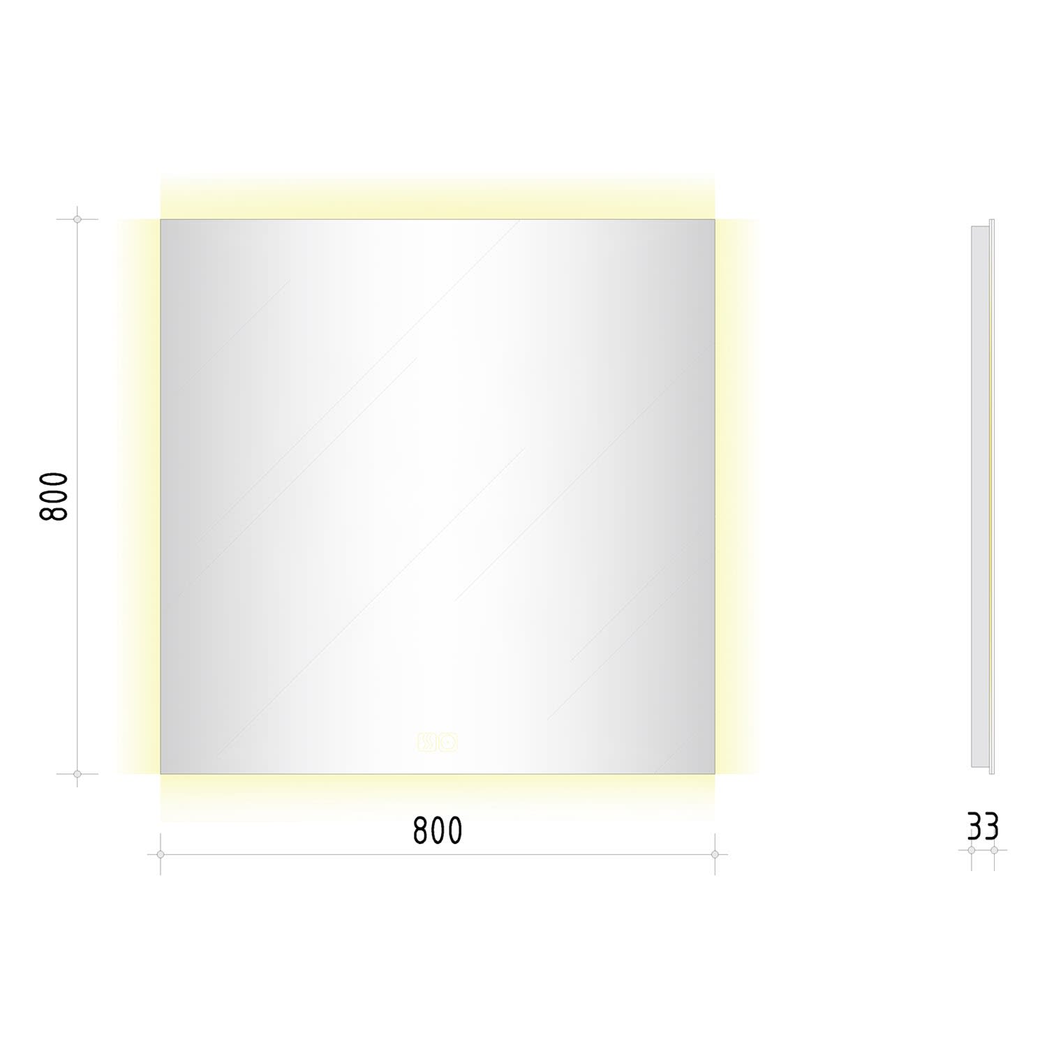 - mit in die Spiegelfläche integrierten Touch-Schaltern für an/aus, Dimmfunktion und Antibeschlag