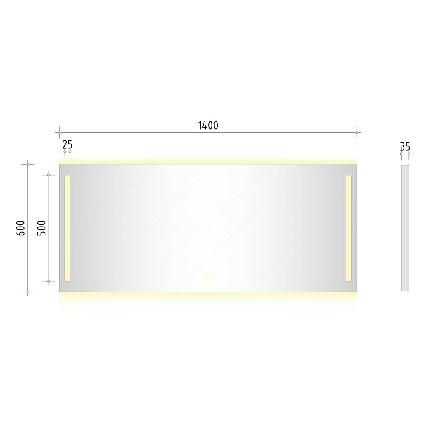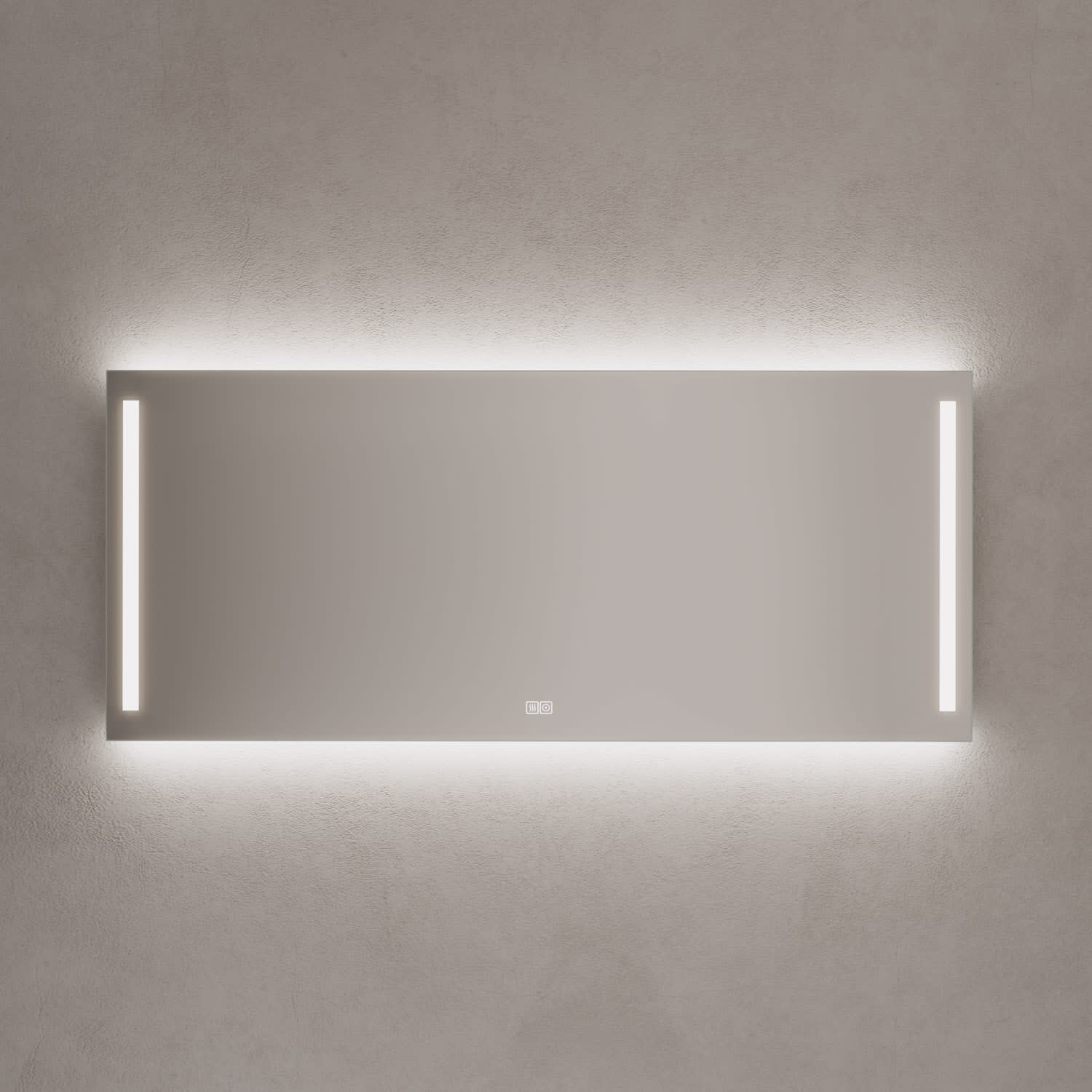 - mit in die Spiegelfläche integrierten Touch-Schaltern für an/aus, Dimmfunktion und Antibeschlag