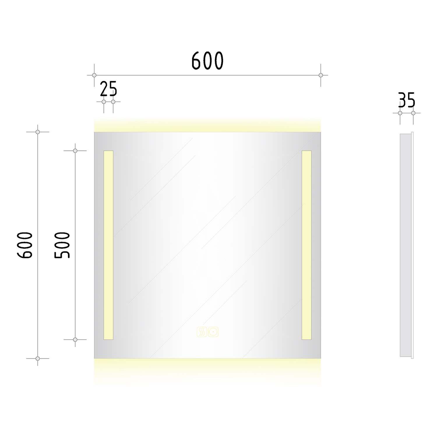 Kronenbach Sun Badspiegel 60 x 60 cm mit LED Seiten- und Hintergrundbeleuchtung
