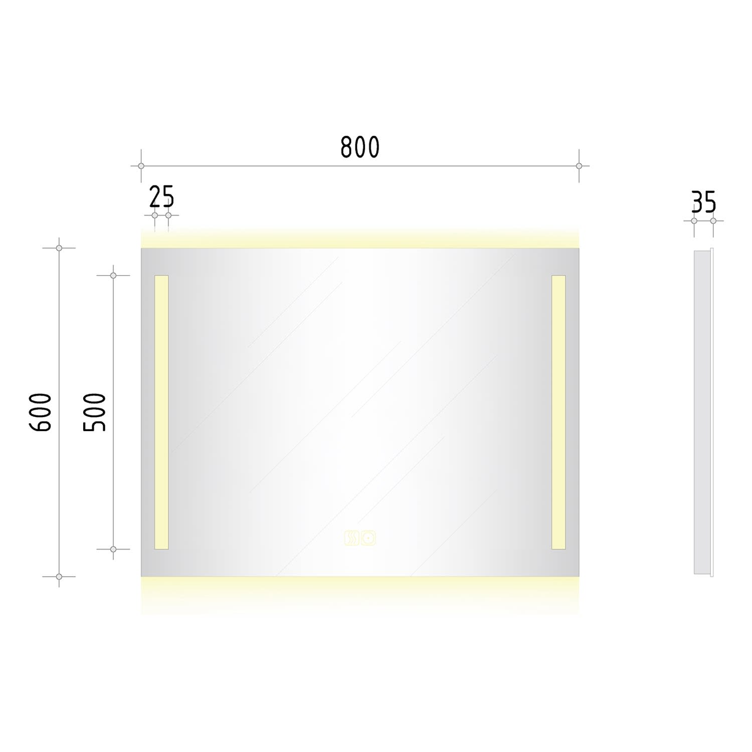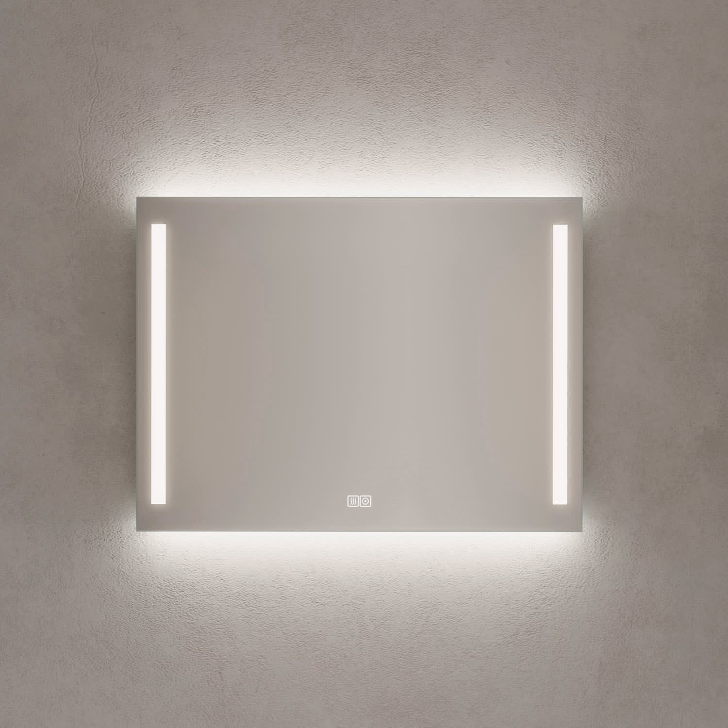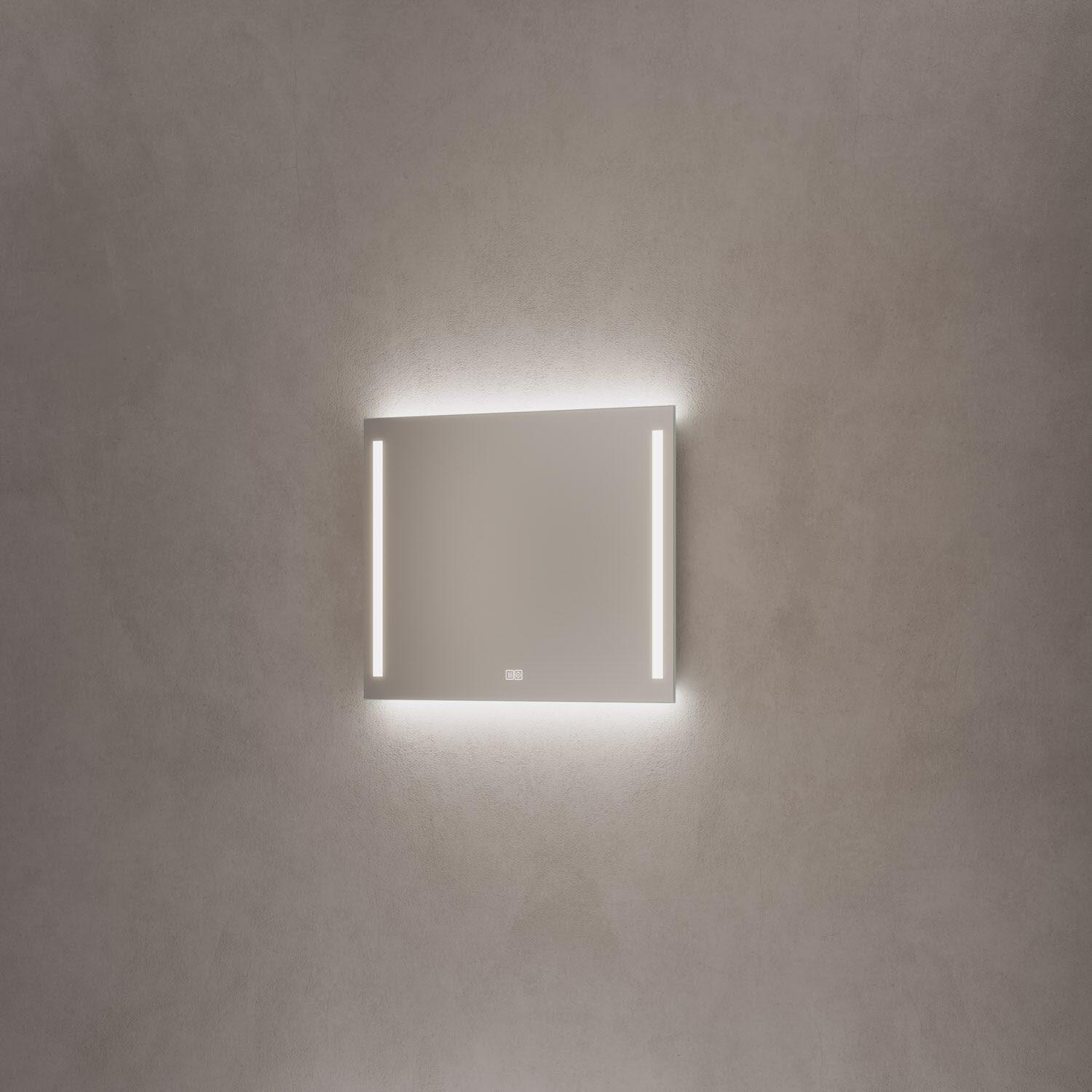 - mit in die Spiegelfläche integrierten Touch-Schaltern für an/aus, Dimmfunktion und Antibeschlag