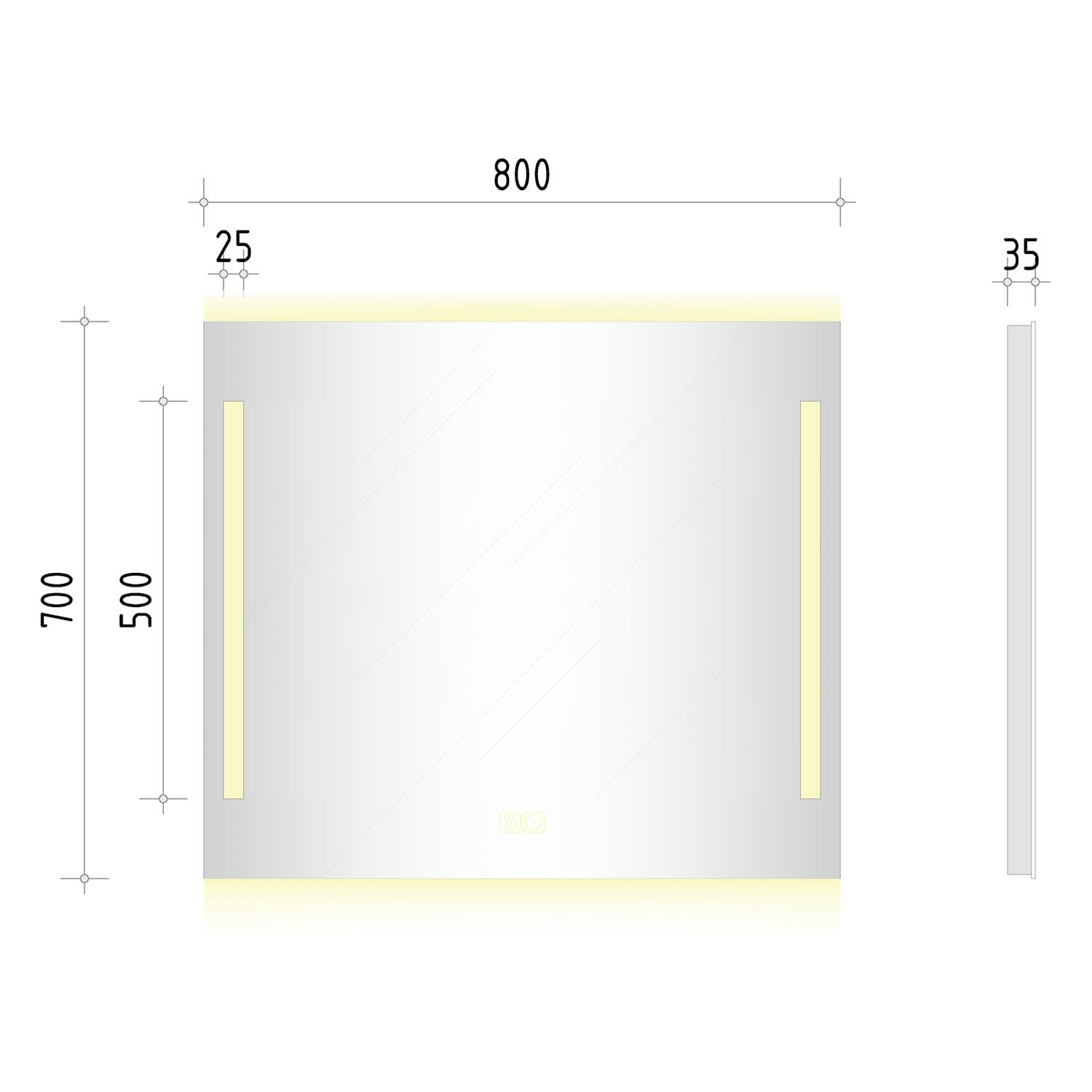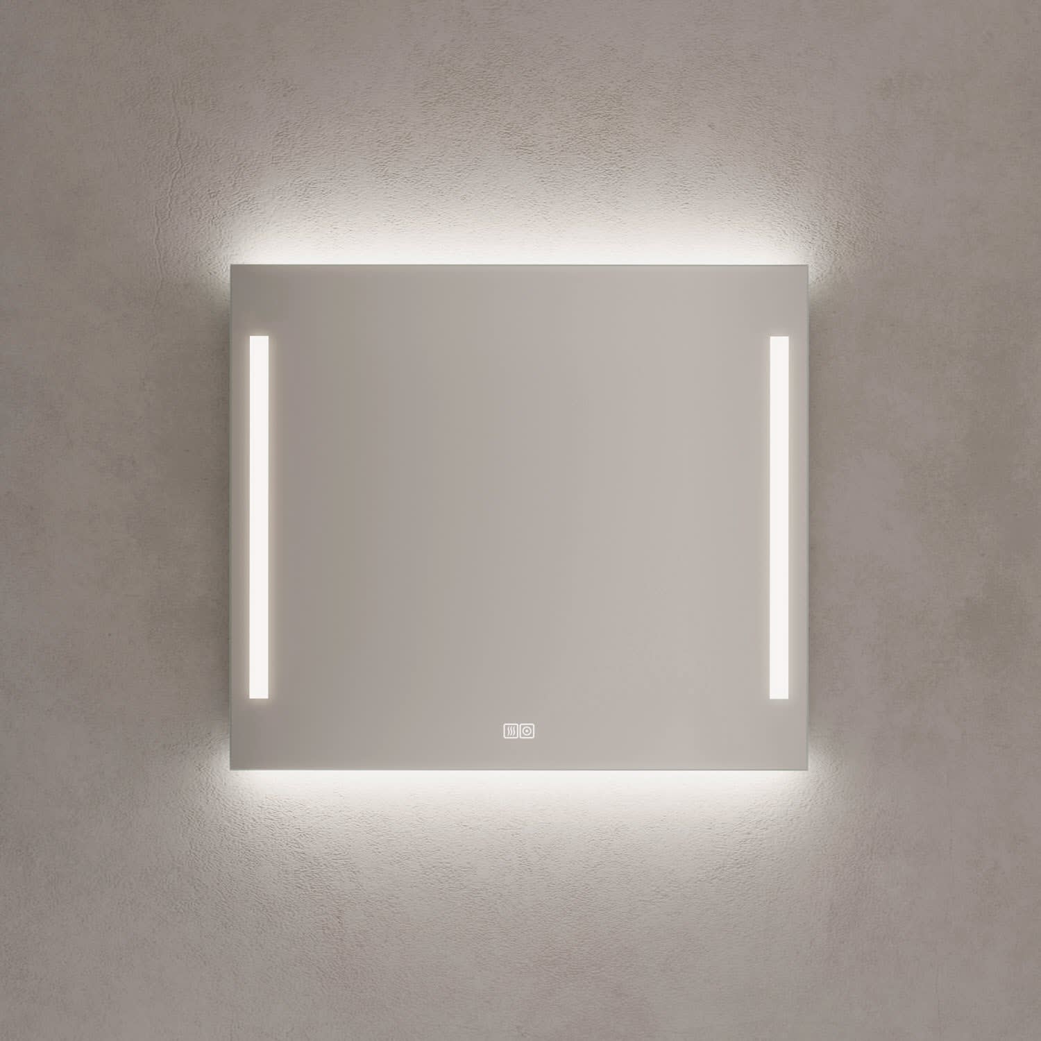 - mit in die Spiegelfläche integrierten Touch-Schaltern für an/aus, Dimmfunktion und Antibeschlag