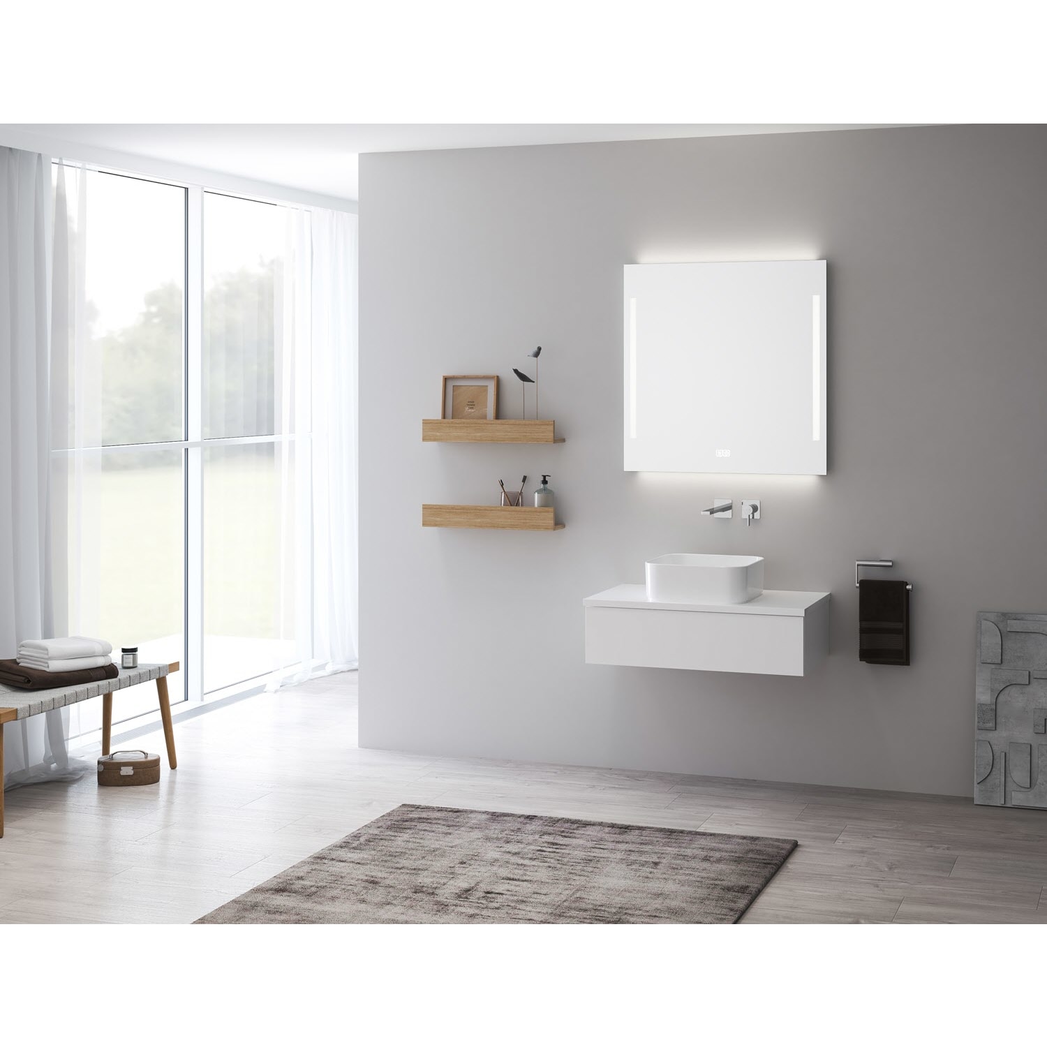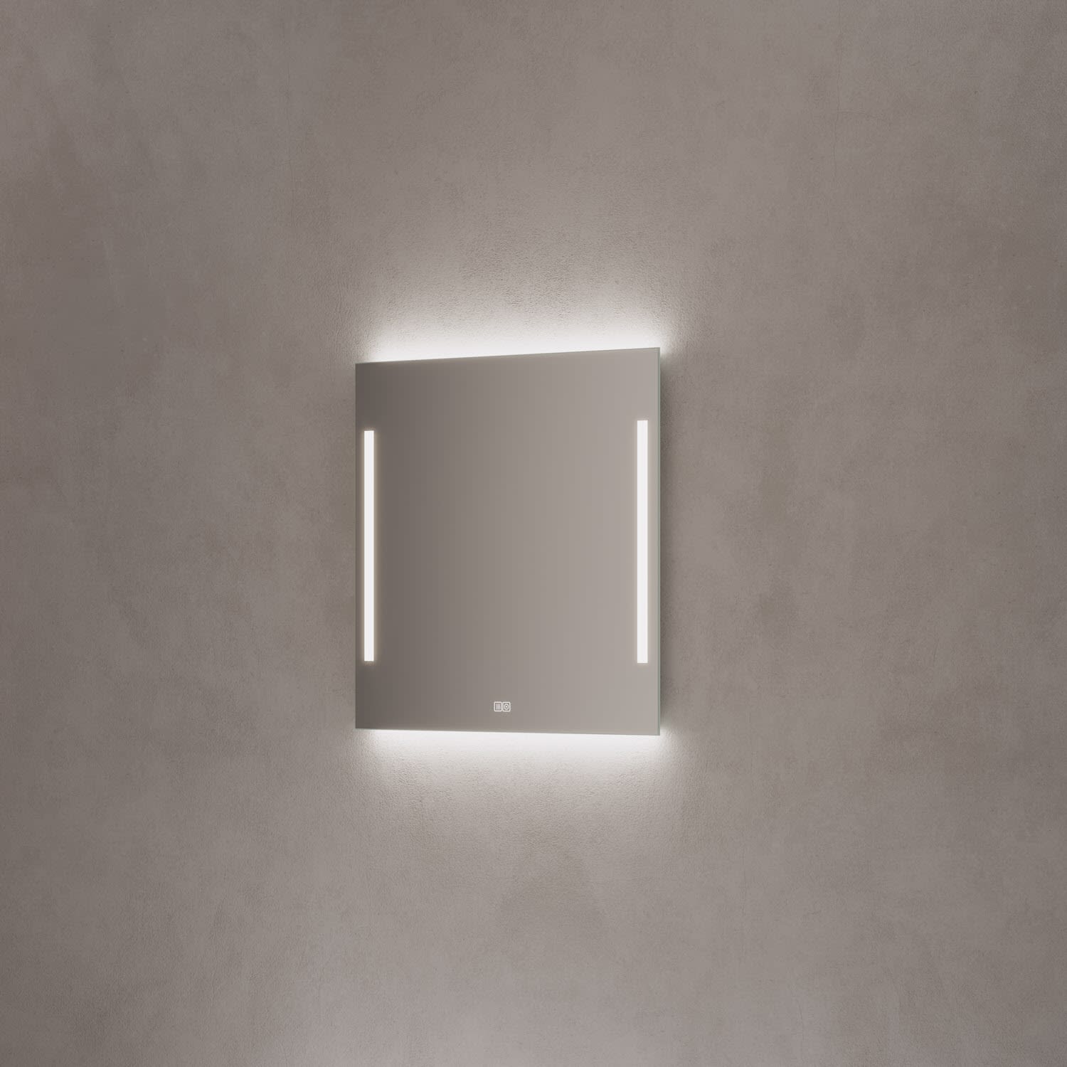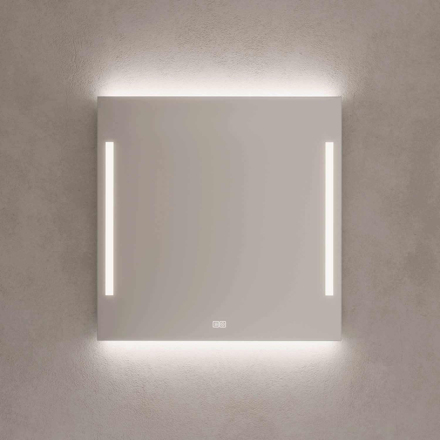 Kronenbach Sun Badspiegel 80 x 80 cm mit LED Seiten- und Hintergrundbeleuchtung für modernes Badezimmerambiente
