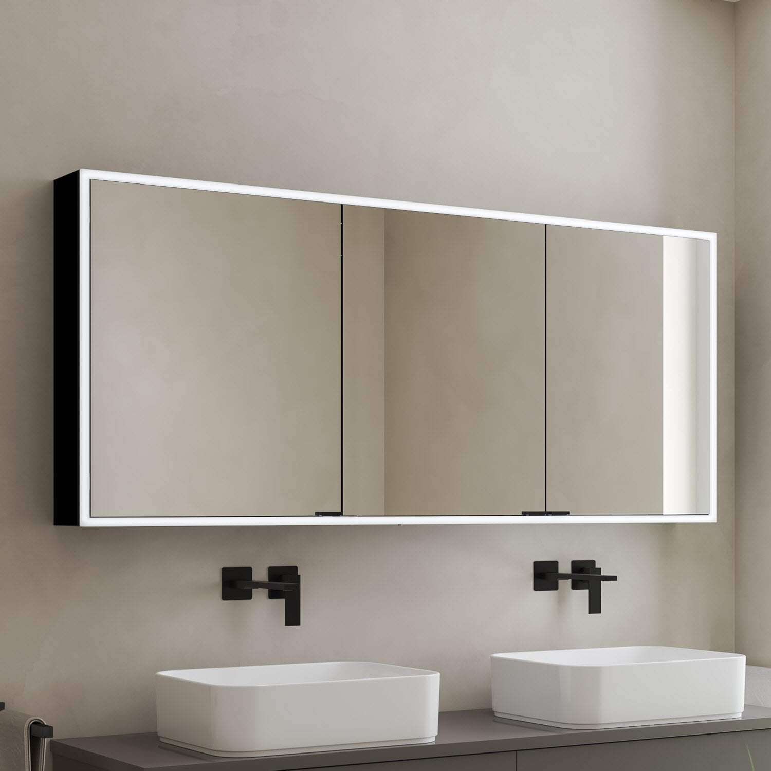 Kronenbach Cube 2.0 Spiegelschrank 140 cm, Aufputz, 3-türig