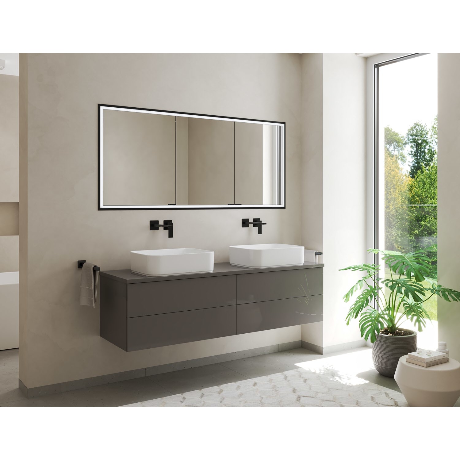Kronenbach Cube Waschtischkonsole 181 cm für 2 Waschtische mit 6 Auszügen und TIP-ON