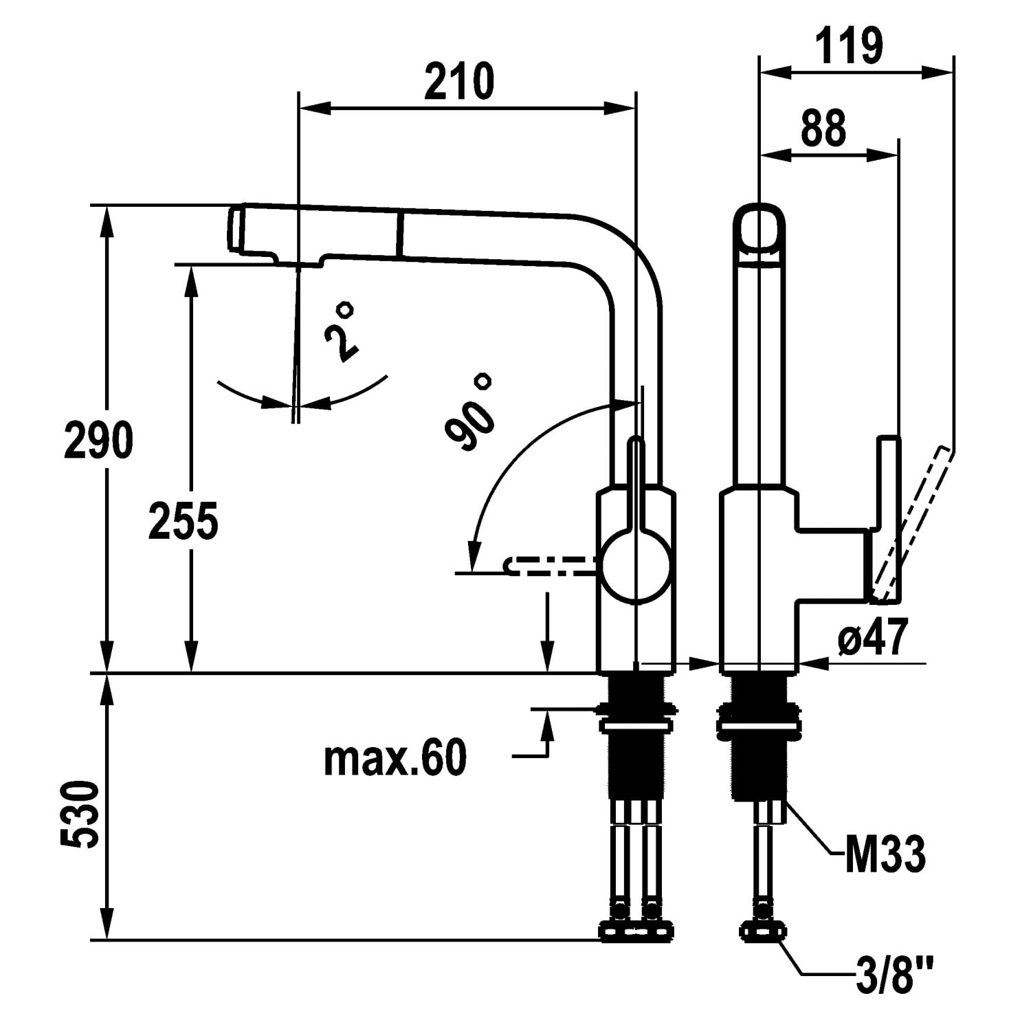- Auszugbrause bis 50 cm ausziehbar