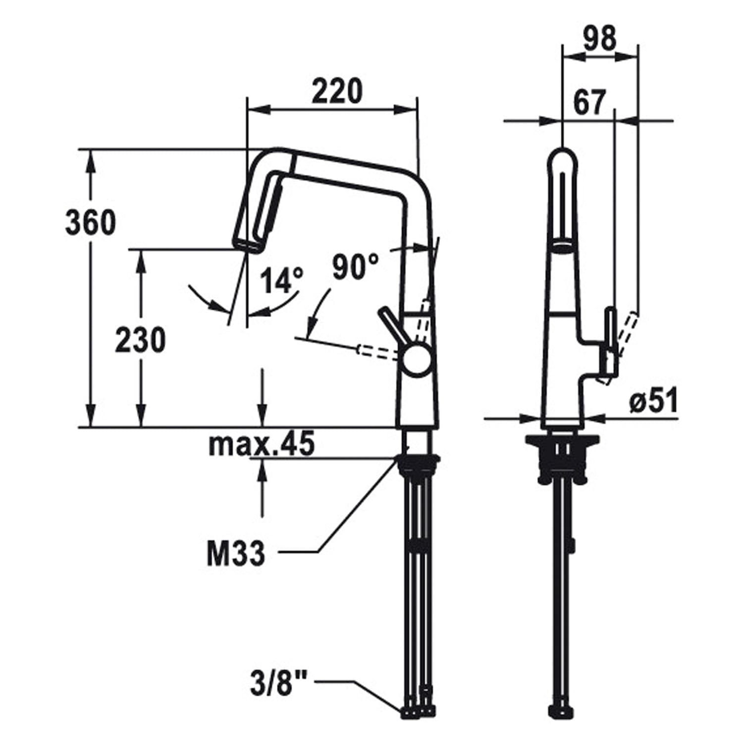 - Hebelmischer, Positionierung des Hebels nur rechts möglich!