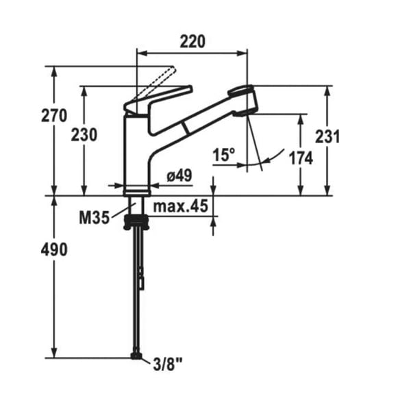 - Auslaufmenge Siebstrahl 9 l/min (3 bar)