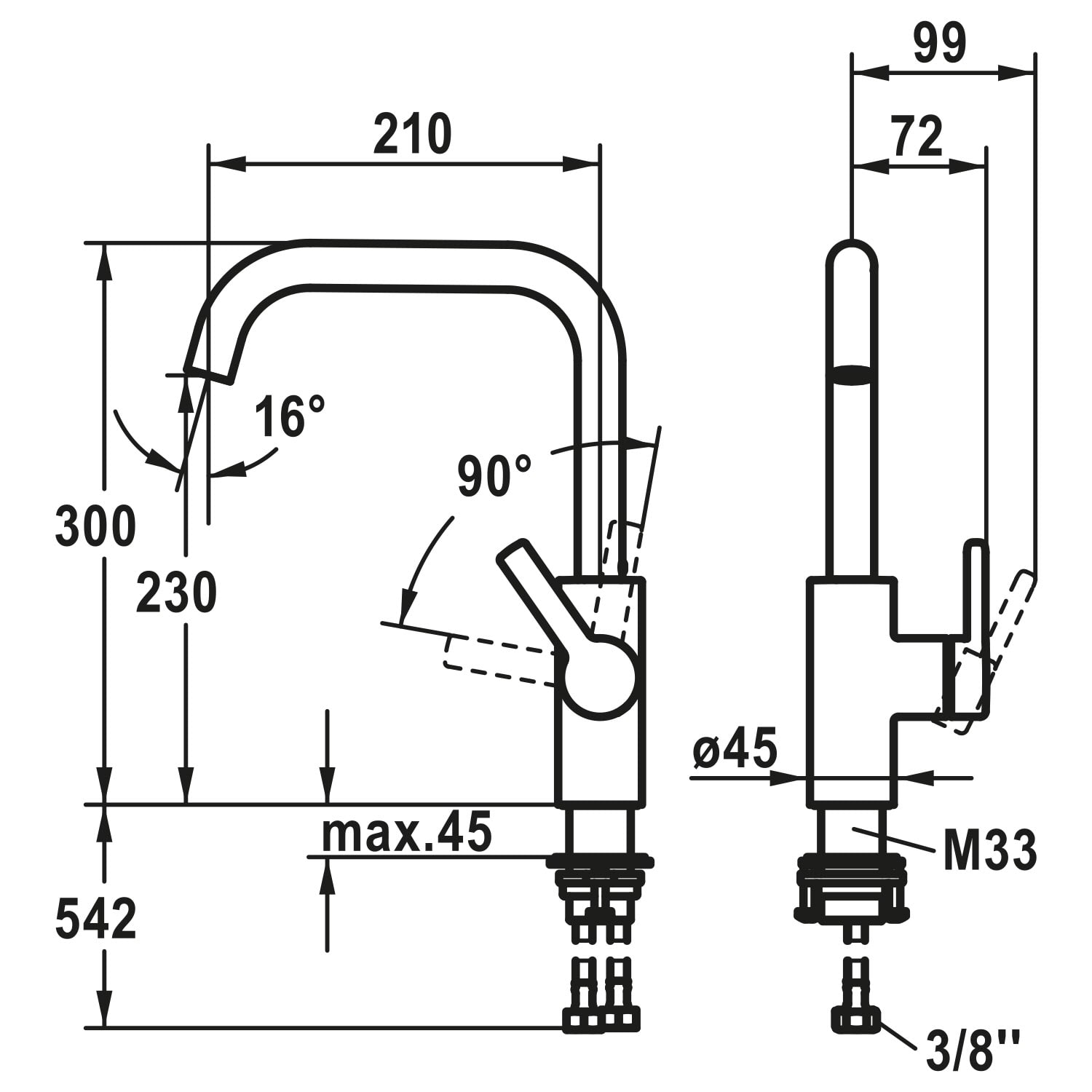 - SwivelStop - Schwenkauslauf 360° , begrenzbar auf 150°