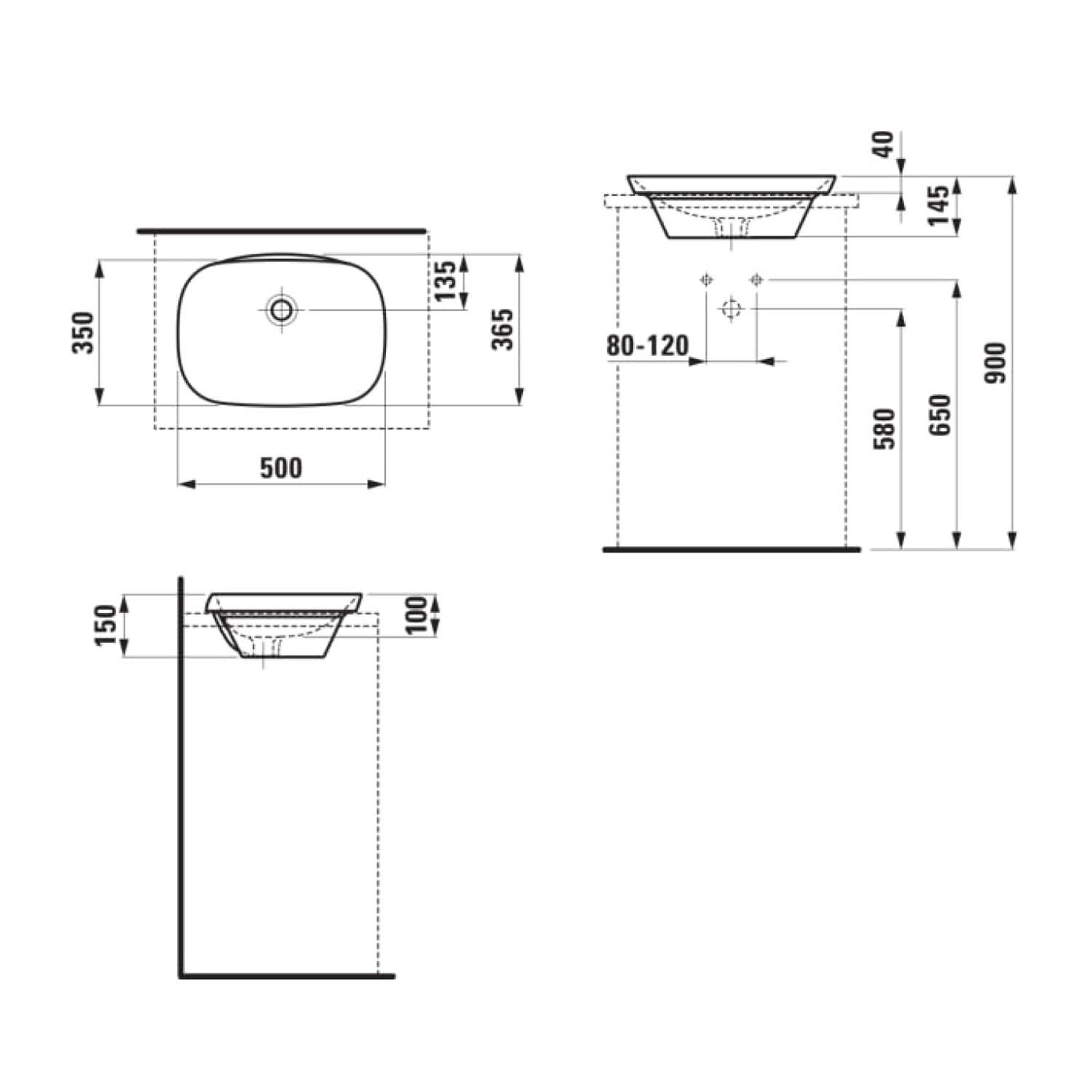 LAUFEN INO Einbauwaschtisch von oben 50 x 36,5 cm mit Überlauf