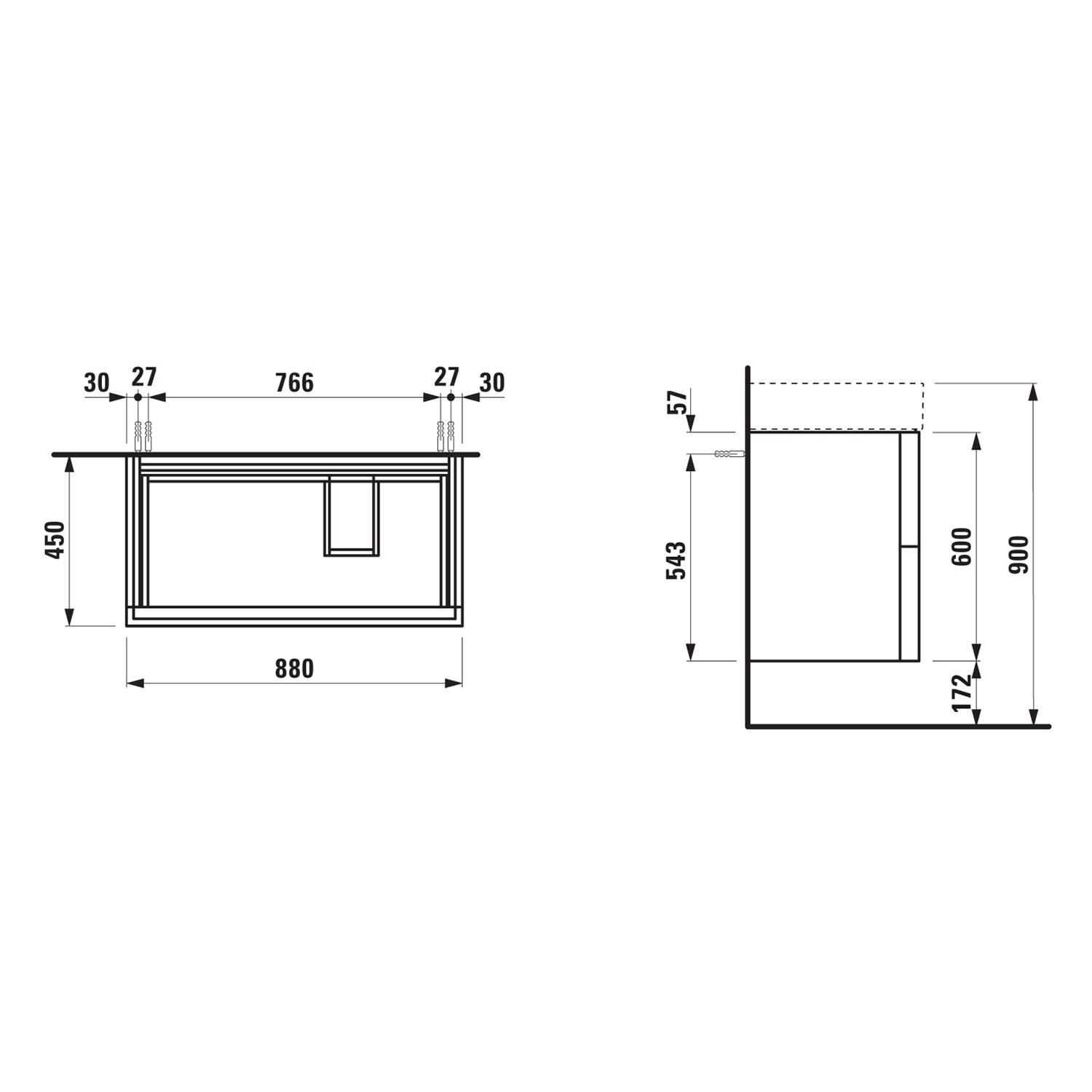 LAUFEN Kartell Waschtischunterbau 88 cm mit 2 Auszügen