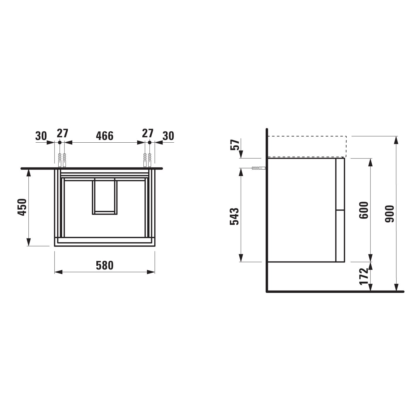 LAUFEN Kartell Waschtischunterbau 58 cm mit 2 Auszügen
