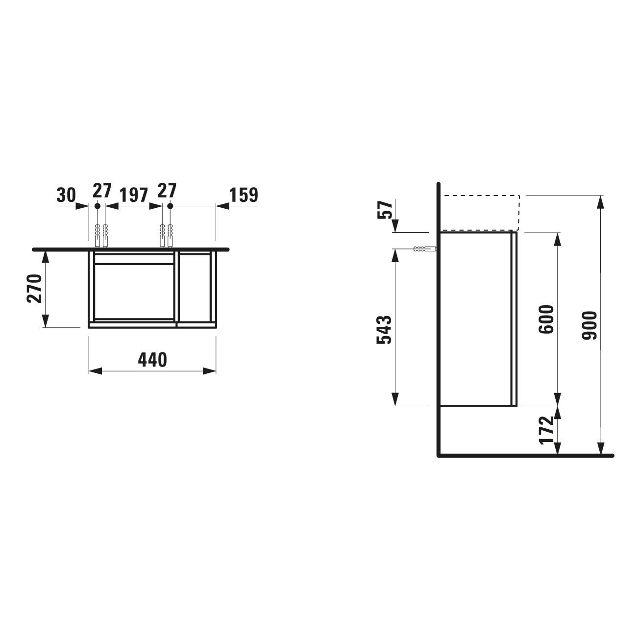 LAUFEN Kartell Waschtischunterbau 44 x 27 cm mit 1 Tür Auszügen