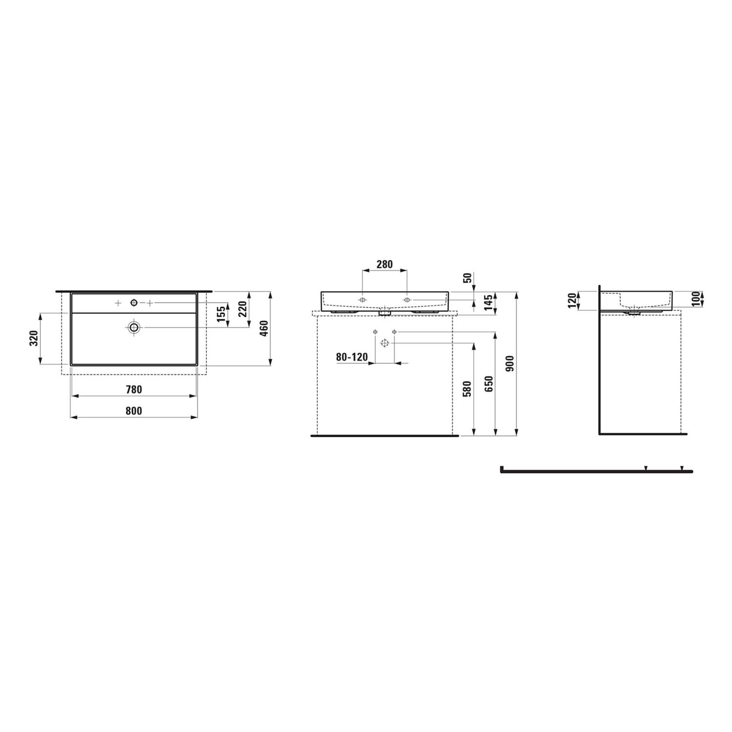 LAUFEN Kartell Aufsatzwaschtisch 80 x 46 cm, mit 1 Hahnloch, ohne Überlauf