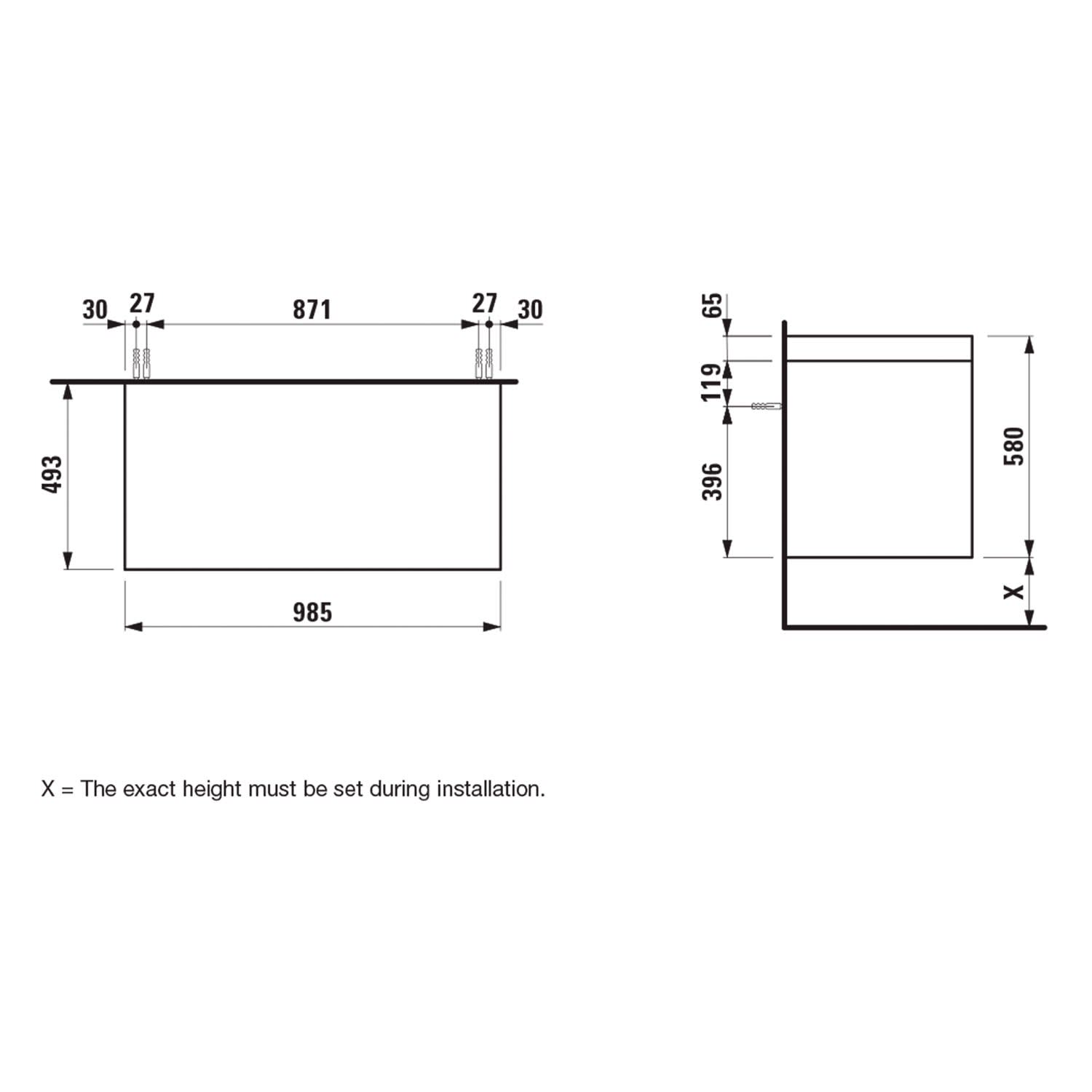 LAUFEN LANI Waschtischplatte ohne Ausschnitt mit Unterschrank 100 cm mit 2 Schubladen