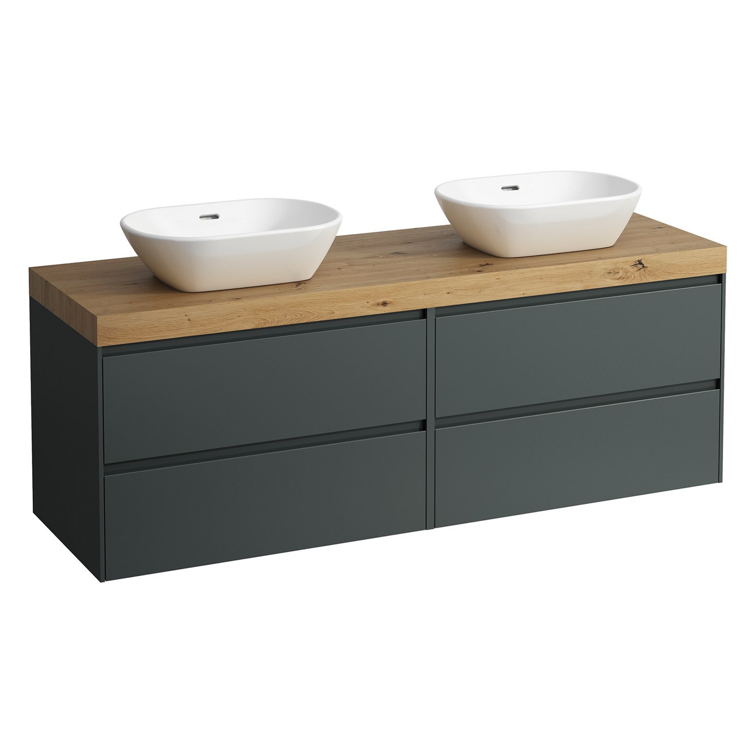 LAUFEN LANI Waschtischplatte mit Ausschnitt rechts und links mit Unterschrank 160 cm mit großen Schubladen rechts und links