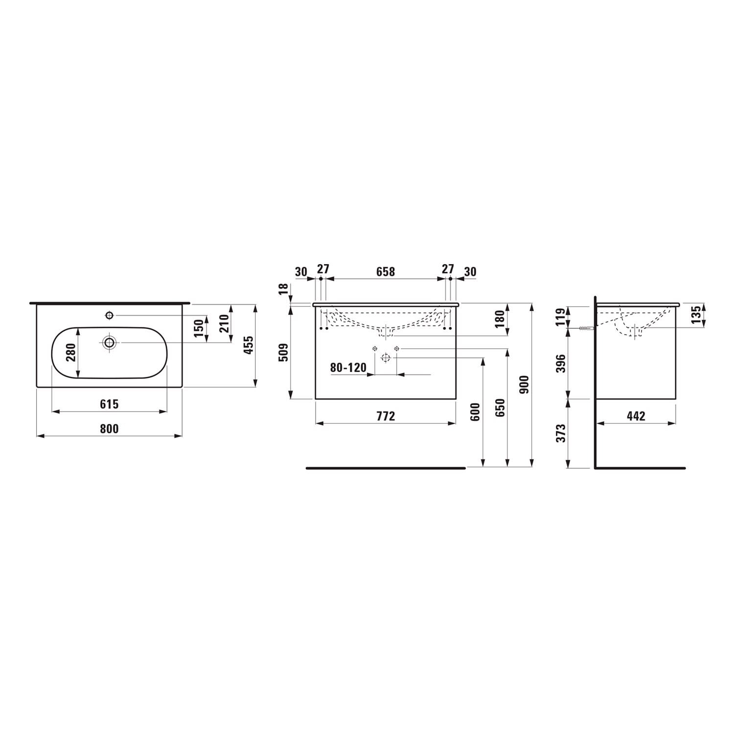 LAUFEN LUA Set LANI Waschtischkombination 80 cm mit 2 Auszügen