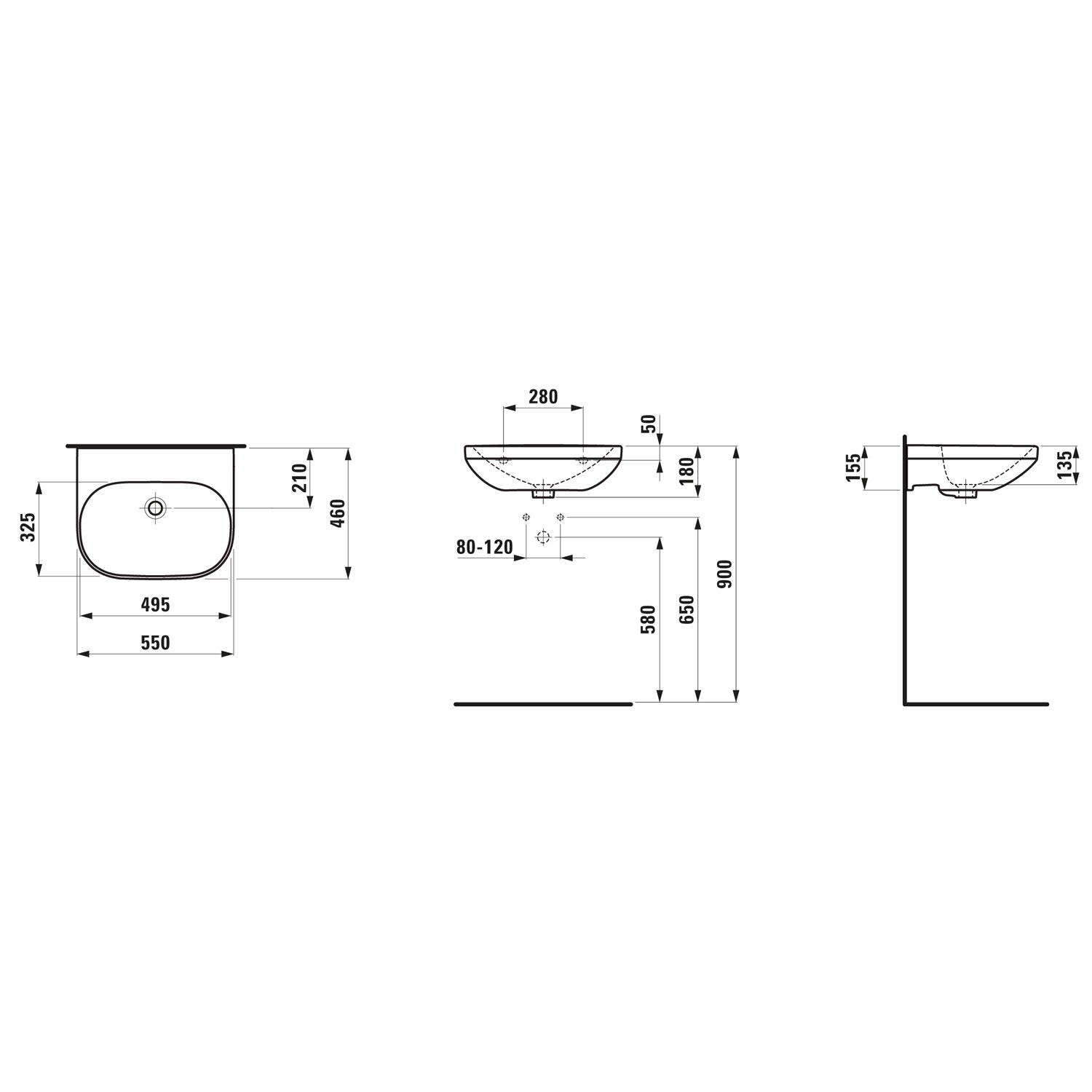LAUFEN LUA Waschtisch 55 x 46 cm ohne Hahnloch, mit Überlauf, nicht unterbaufähig