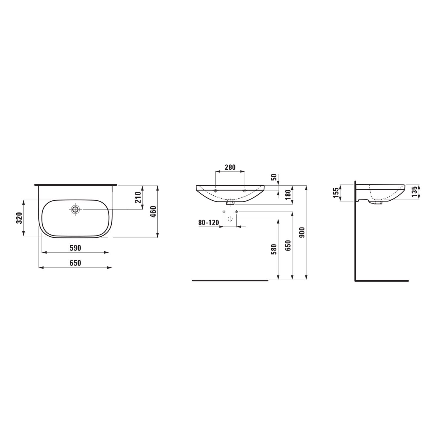 LAUFEN LUA Waschtisch 65 x 46 cm ohne Hahnloch, mit Überlauf, nicht unterbaufähig
