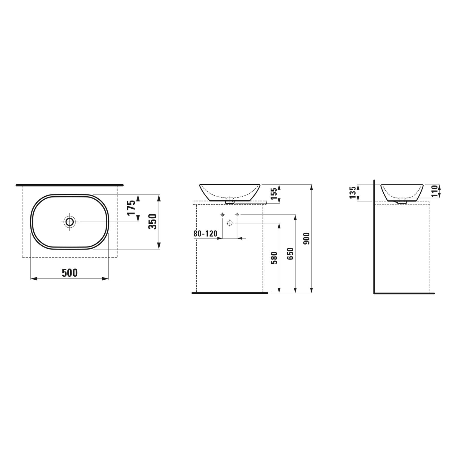 LAUFEN LUA Aufsatzwaschtisch oval 50 x 35,5 cm, mit Überlauf