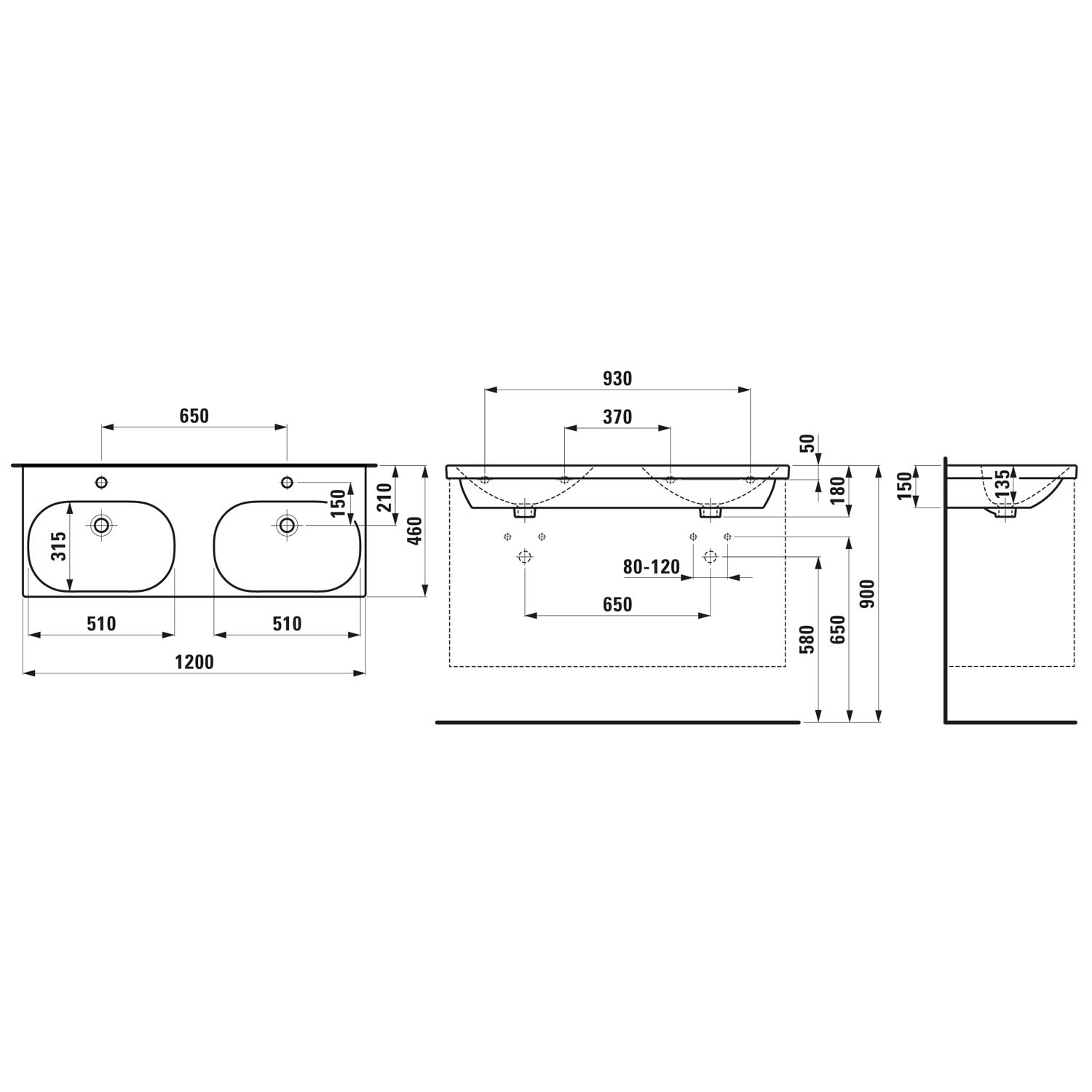 LAUFEN LUA Doppelwaschtisch 120 x 46 cm mit Hahnloch und Überlauf