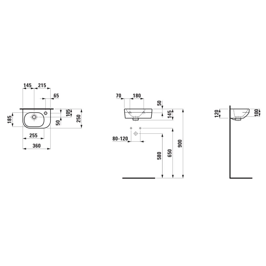 LAUFEN LUA Handwaschbecken 36 x 25 cm, Becken links ohne Überlauf