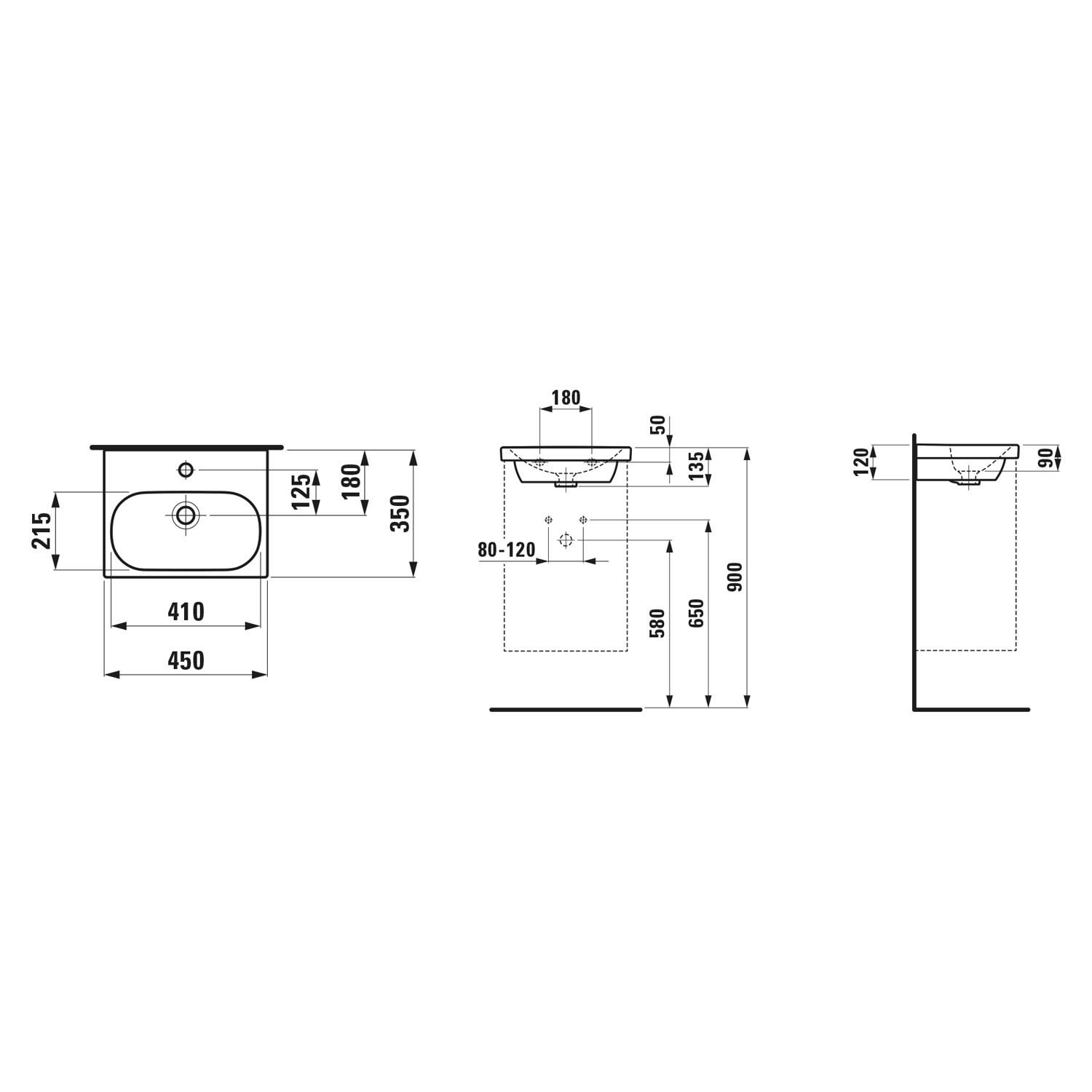 LAUFEN LUA Handwaschbecken 45 x 35 cm mit Hahnloch, ohne Überlauf