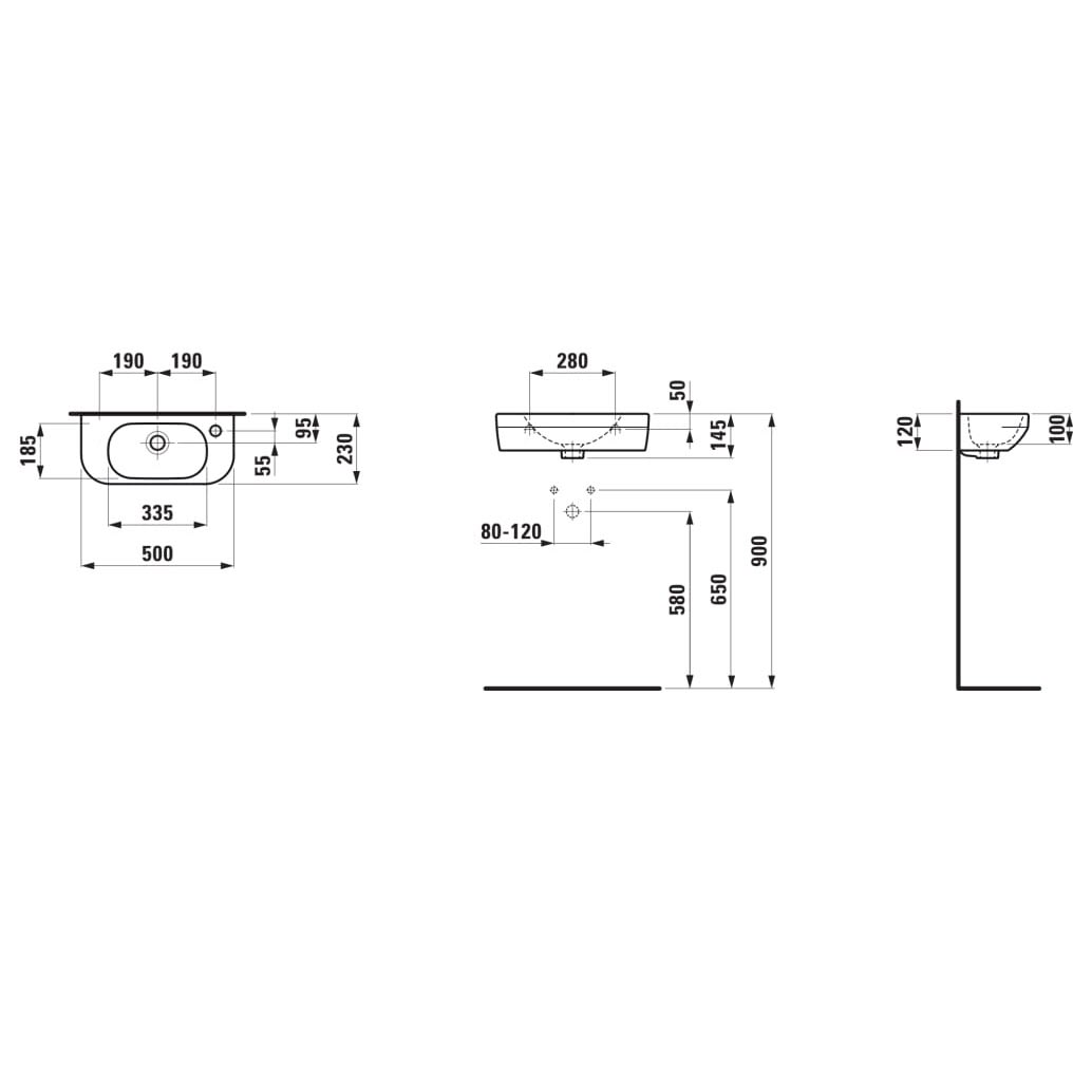 LAUFEN LUA Handwaschbecken 50 x 23 cm, Becken links mit Überlauf