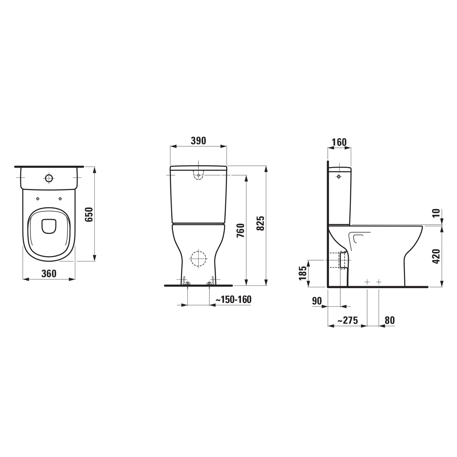 LAUFEN LUA Stand-WC für Kombination, spülrandlos, Abgang waagerecht