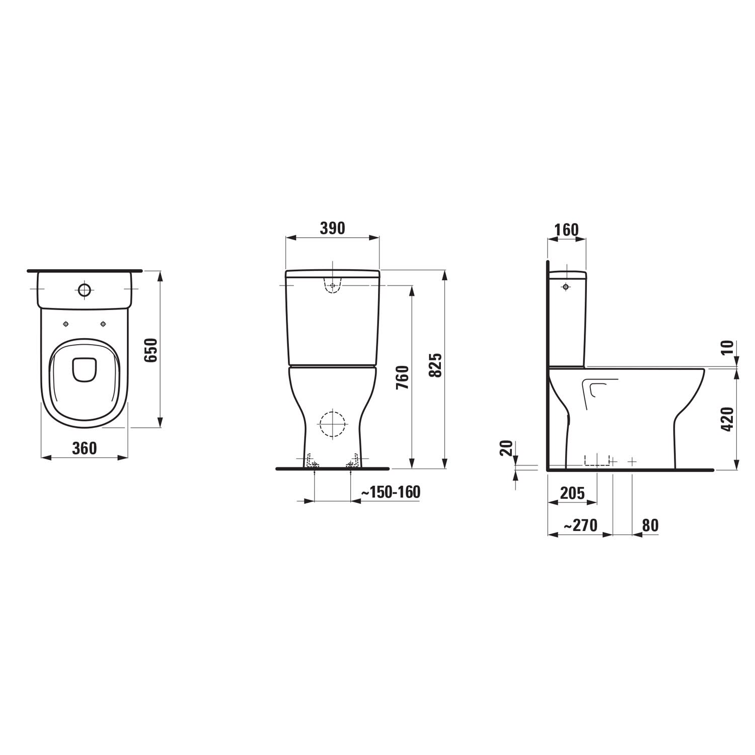 LAUFEN LUA Stand-WC für Kombination, spülrandlos, Abgang senkrecht