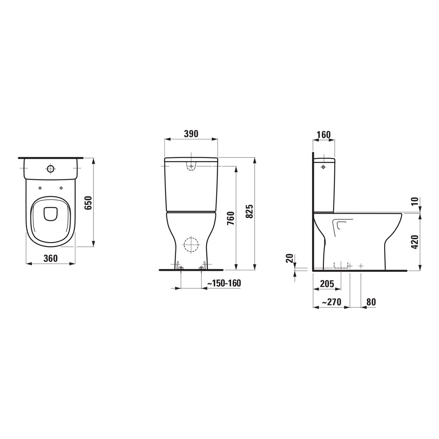 LAUFEN LUA Stand-WC für Kombination, spülrandlos, Abgang senkrecht