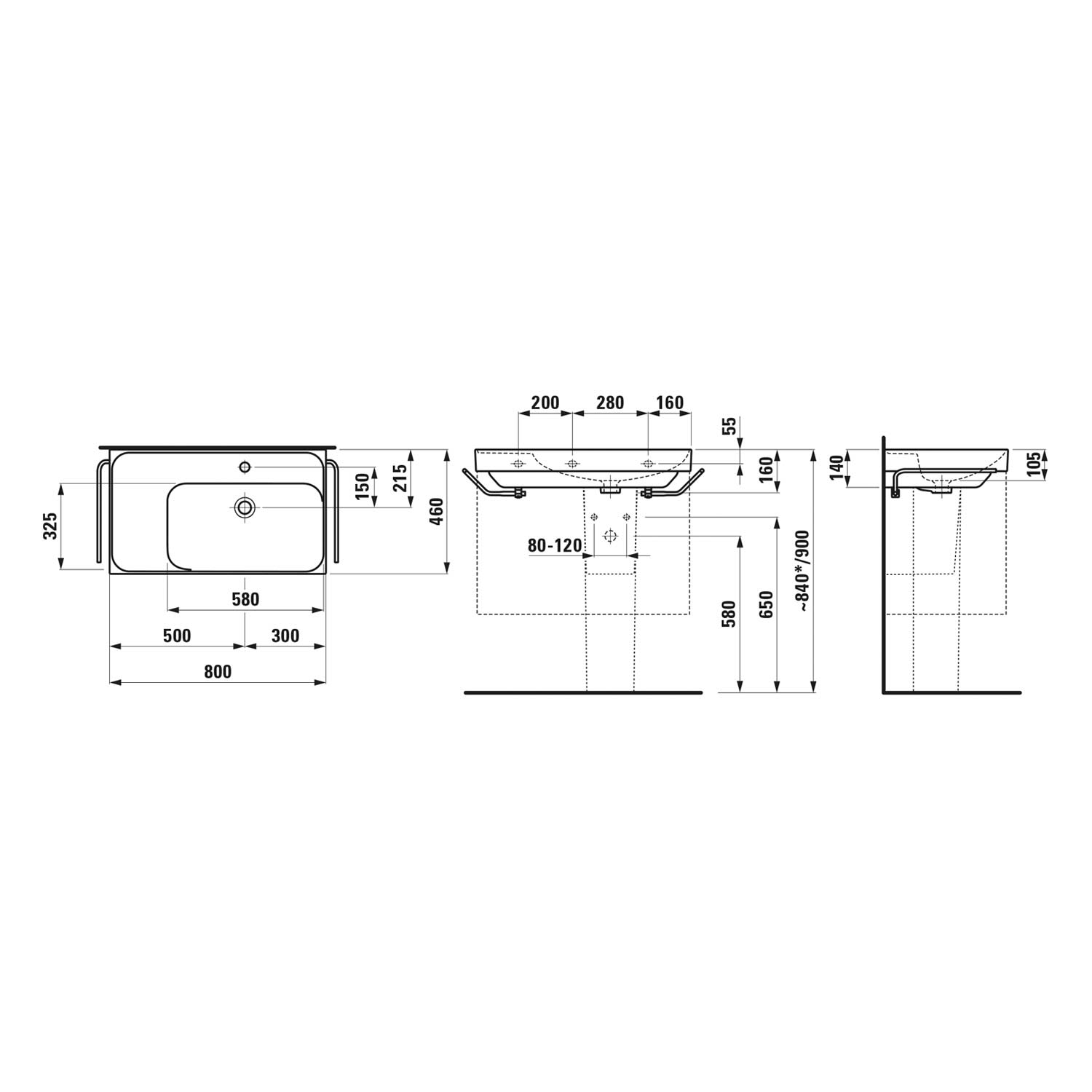 LAUFEN MEDA Waschtisch 80 x 46 cm, ohne Hahnloch und Überlauf, Ablage links