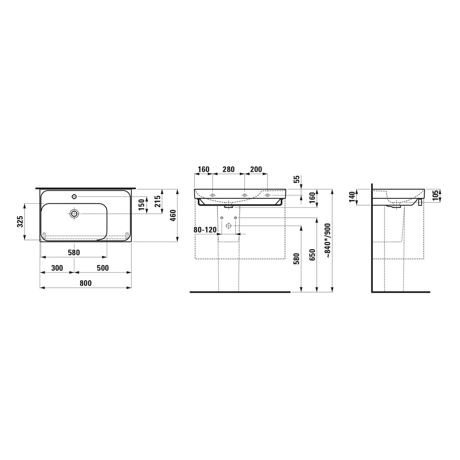 LAUFEN MEDA Waschtisch 80 x 46 cm, mit Hahnloch und Überlauf, Ablage rechts