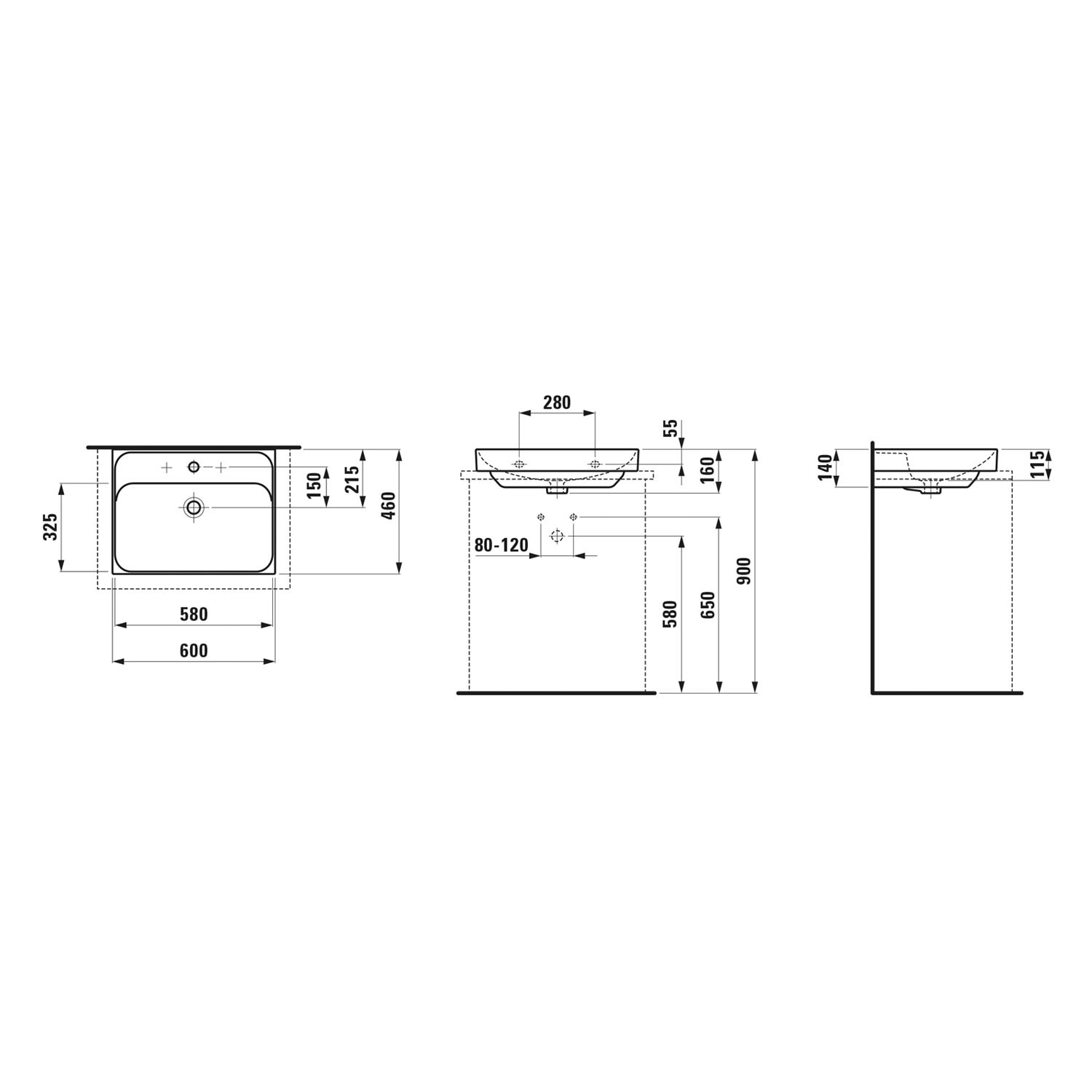 LAUFEN MEDA Aufsatzwaschtisch 60 x 46 cm, mit Hahnloch und Überlauf