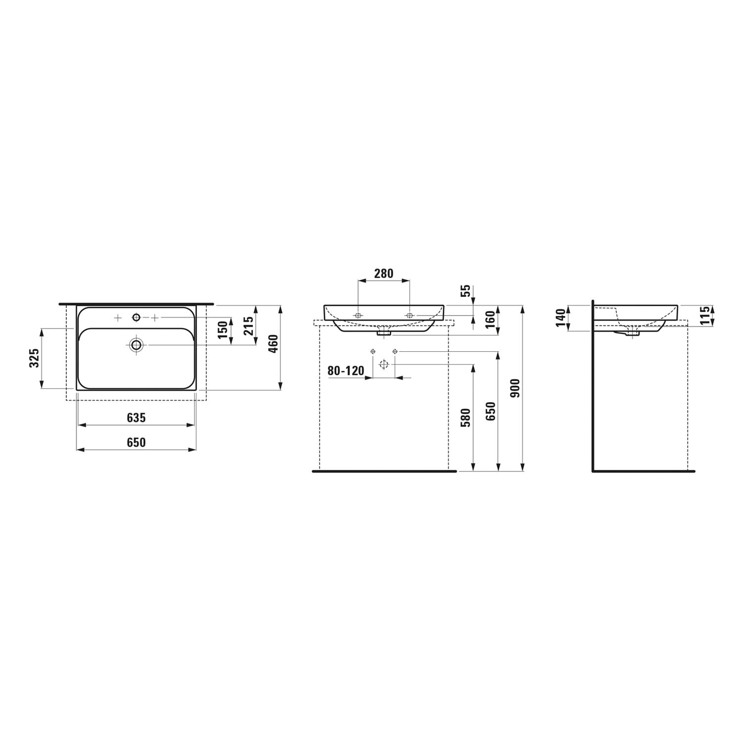 LAUFEN MEDA Aufsatzwaschtisch 65 x 46 cm, mit Hahnloch ohne Überlauf