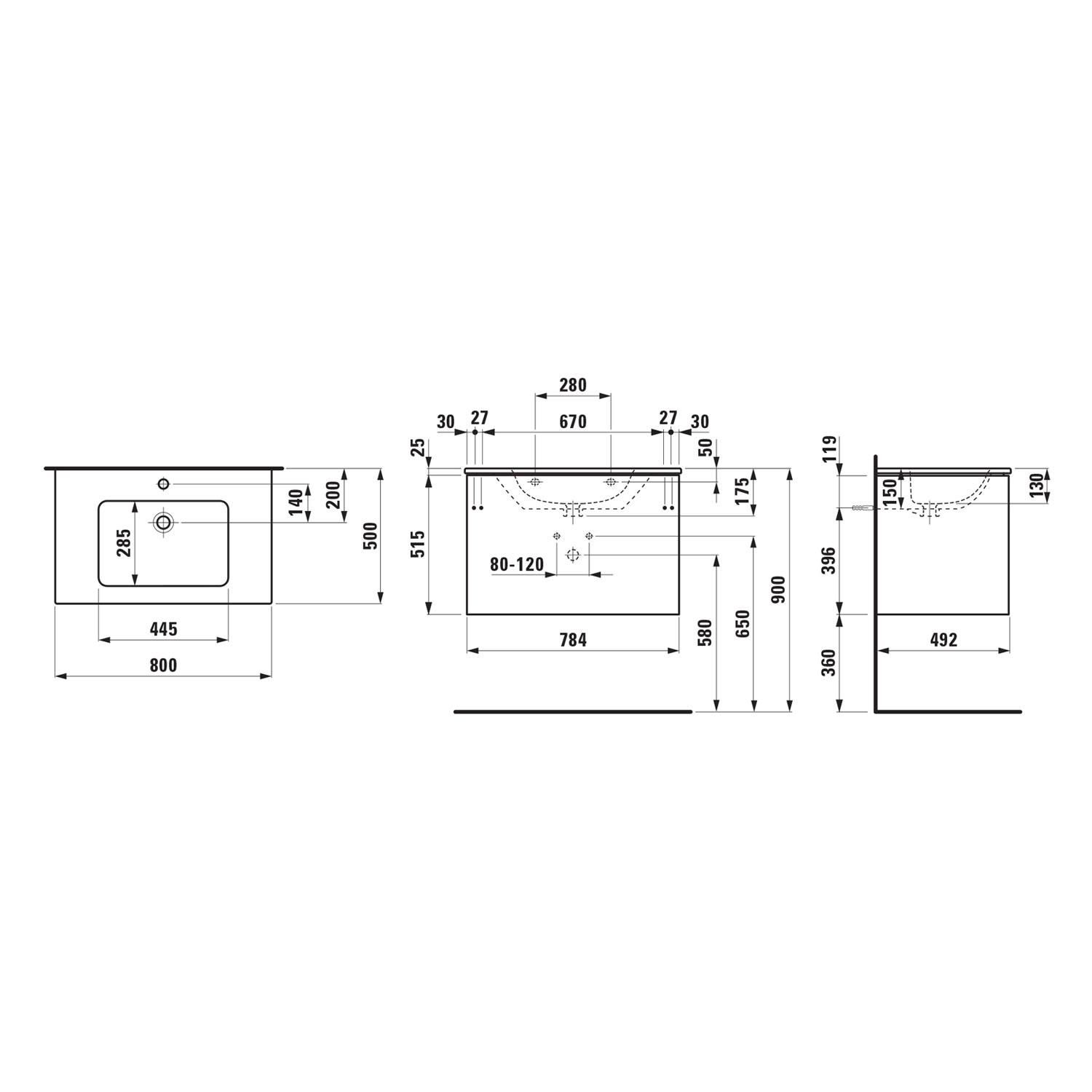 LAUFEN PRO Set LANI Waschtisch mit Überlauf inkl. Waschtischunterbau 80 cm