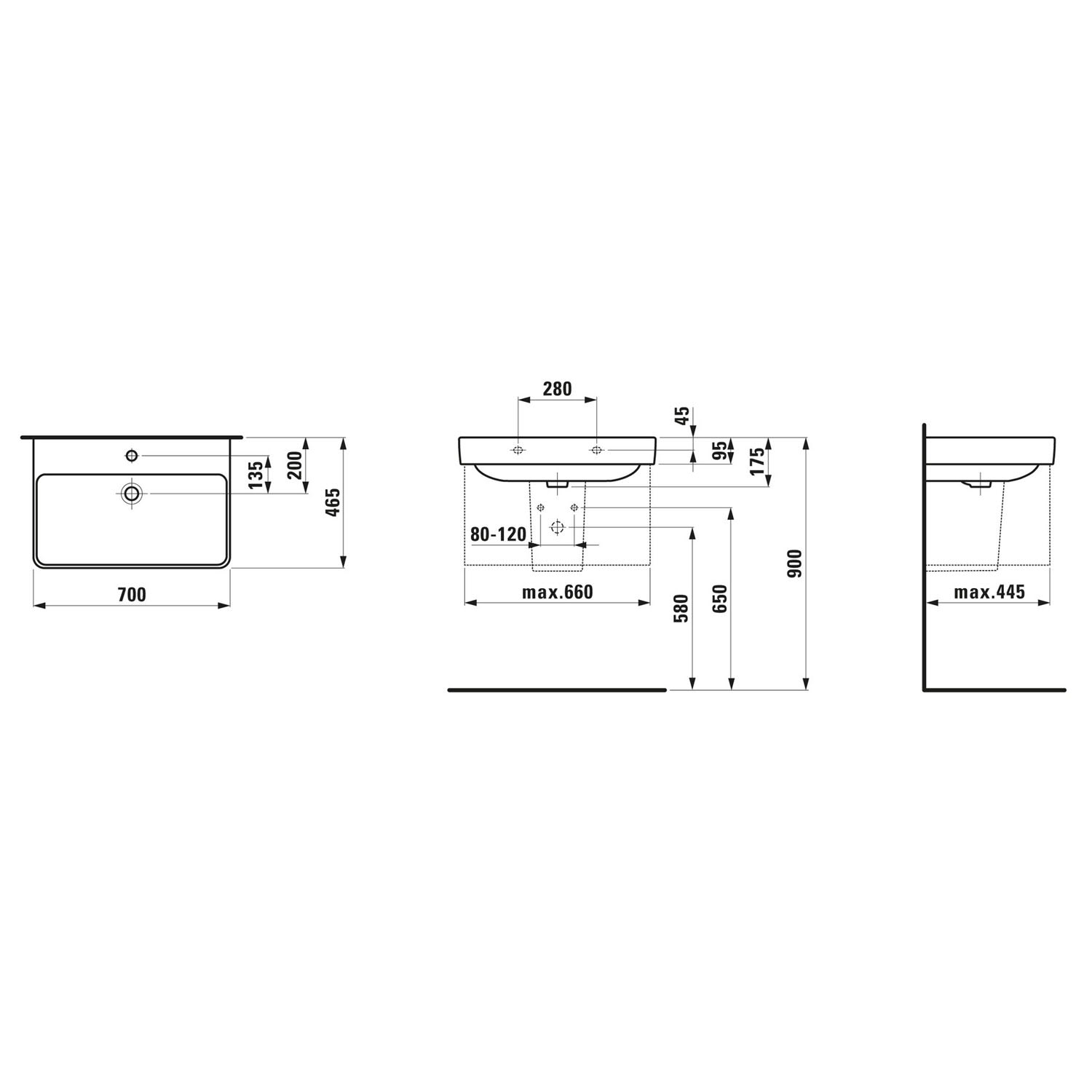 LAUFEN PRO S Waschtisch 70 cm, mit 1 Hahnloch, mit Überlauf