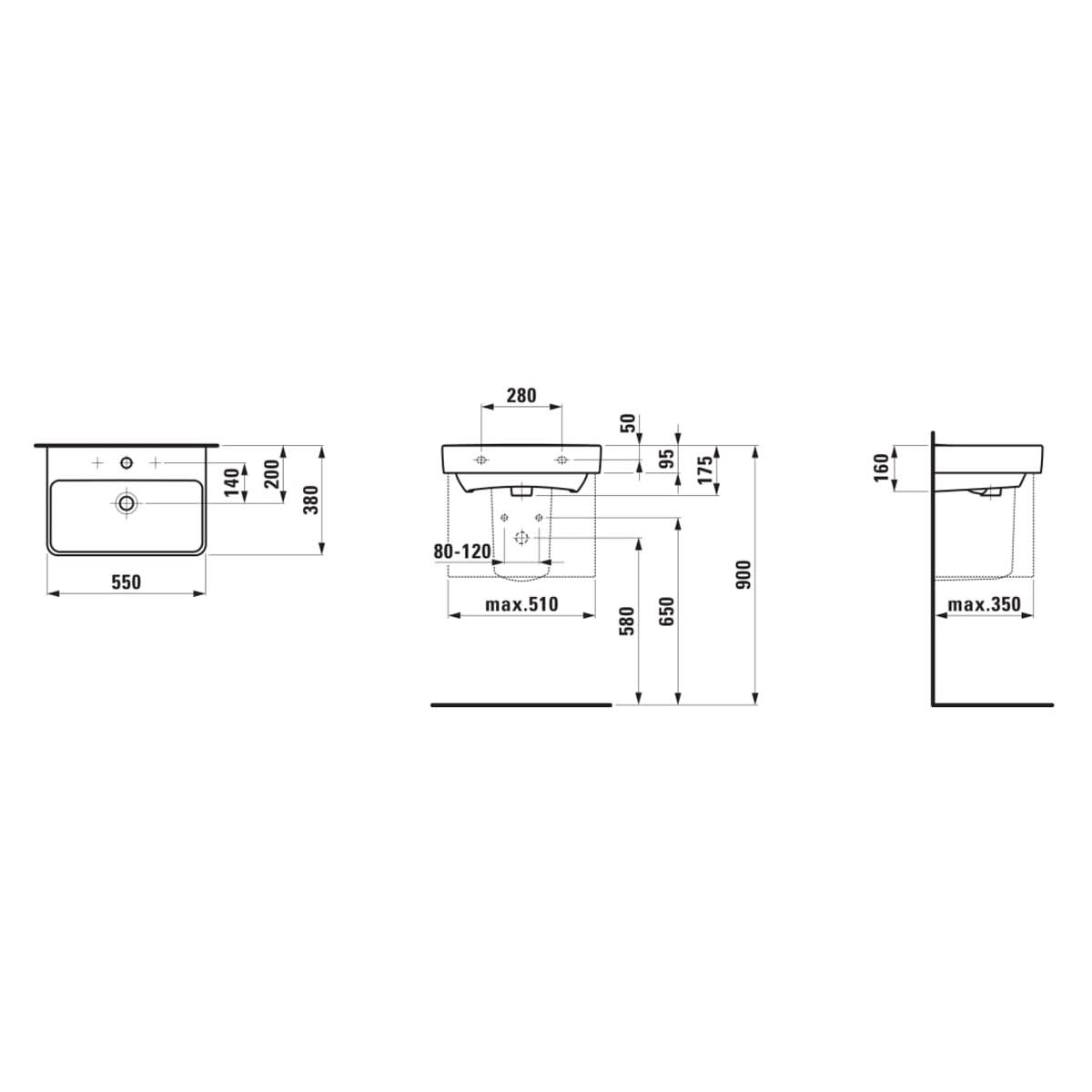 LAUFEN PRO S Compact Waschtisch 55 cm, mit 1 Hahnloch, mit Überlauf