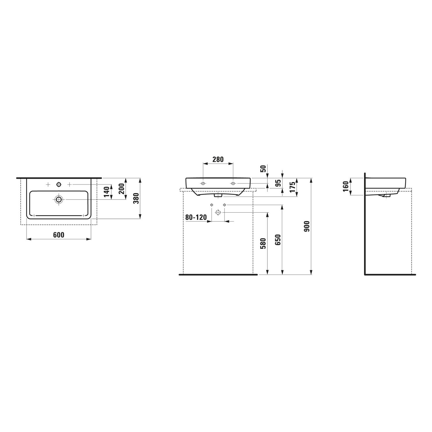 LAUFEN PRO S Compact Aufsatzwaschtisch 60 cm, mit 1 Hahnloch, mit Überlauf