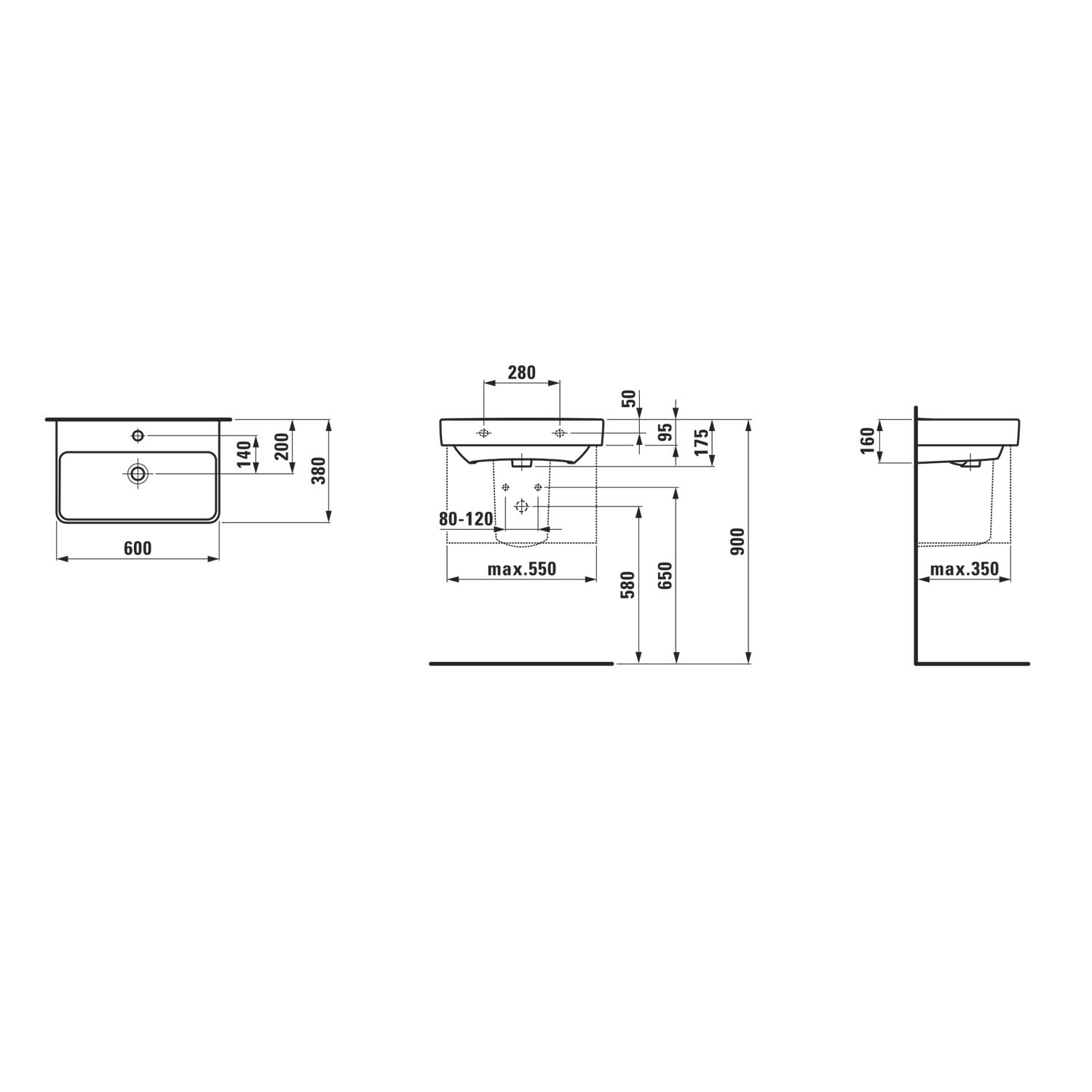 LAUFEN PRO S Compact Waschtisch 60 cm, ohne Hahnloch, ohne Überlauf